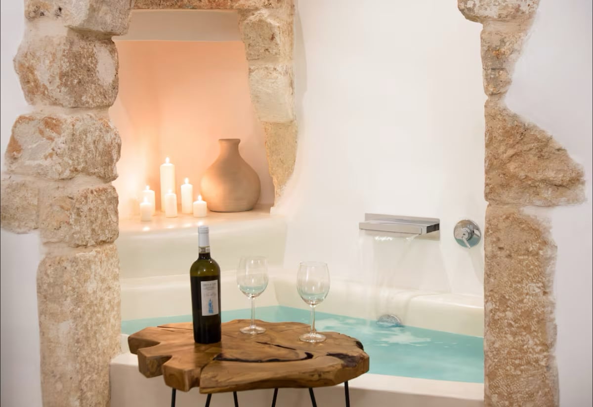 Situato nel pieno centro storico di Locorotondo, Ughetto, è una deliziosa suite: la zona giorno è fornita di ripostiglio, angolo cottura, tavolo da pranzo, frigorifero e TV. Un'alcova adornata di un antico arco in pietra accoglie il divano letto di supplemento alla zona notte situata nella parte est e fornita di letto matrimoniale, stand appendiabiti e TV. Il bagno è dotato di ogni comfort. L'intero appartamento è provvisto di riscaldamento, aria condizionata e wifi gratuito.