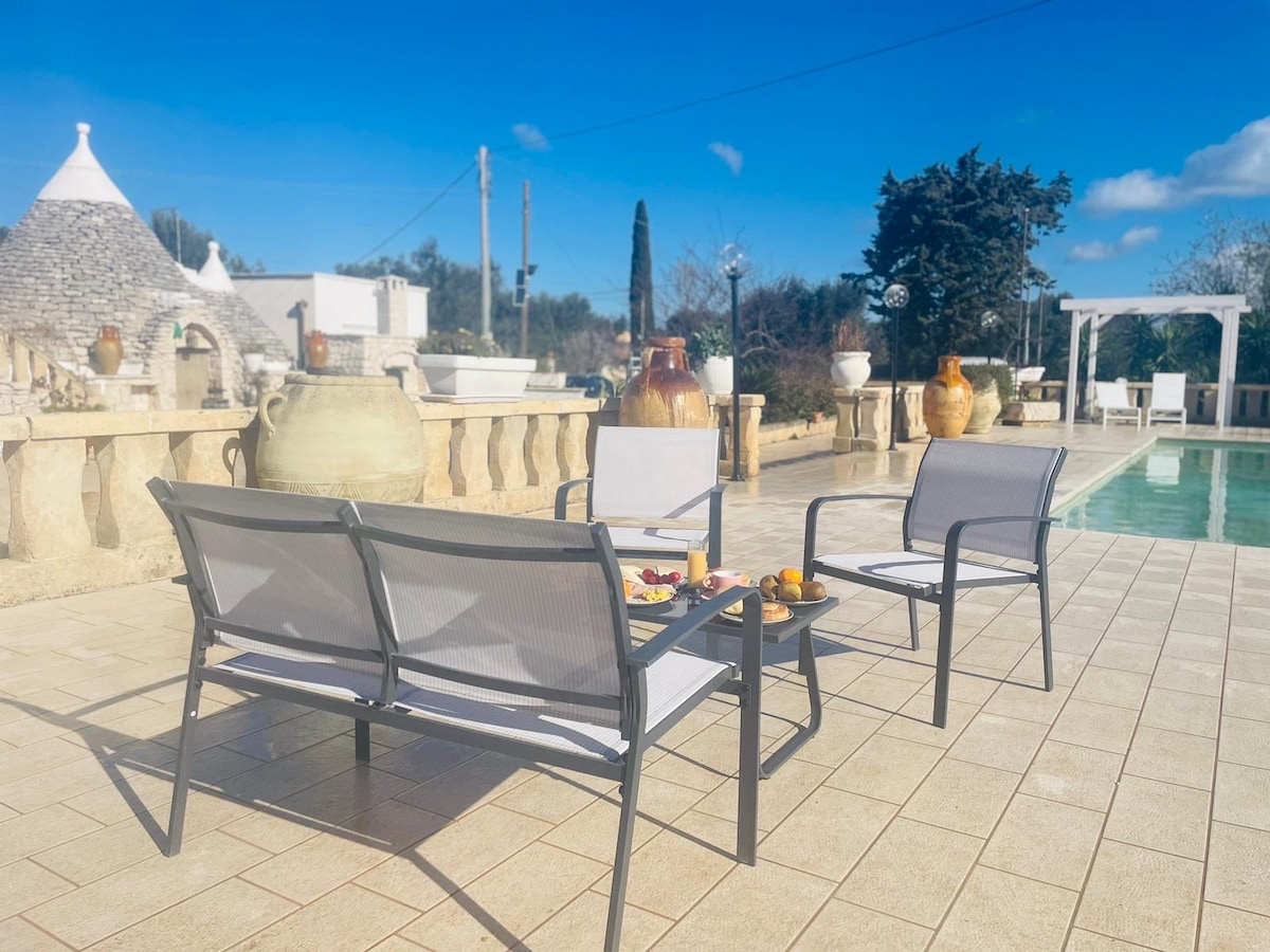 Your group will be comfortable in this spacious and unique space. Nestled in the countryside amongst olive trees, Guesthouse Serenità (Serenity) is ideally situated in the Valle d'Itria between Ceglie Messapica and Villa Castelli. It is the perfect base from which to explore all that beautiful Puglia has to offer. The recently restored guesthouse sleeps 4 and is fully equipped with a large private bathroom, kitchen, lounge and outdoor covered terrace. The relaxing pool area is a guest favourite.