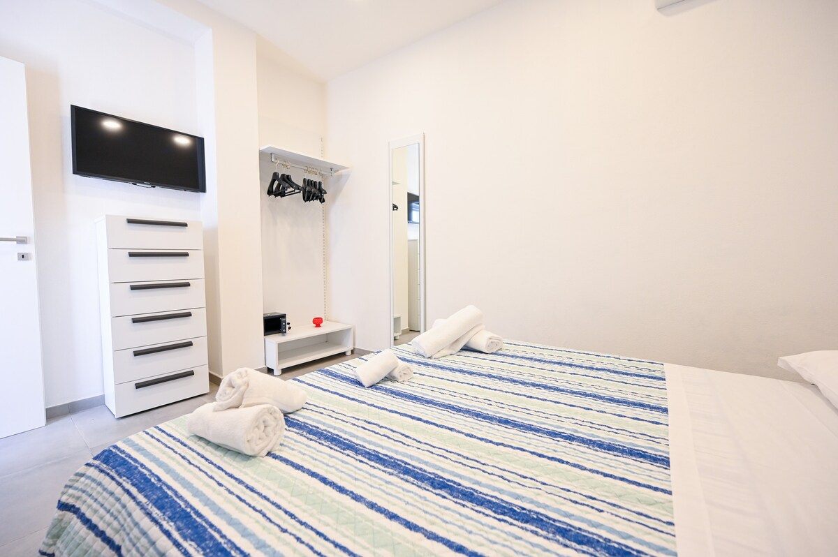 A retreat between sea and history: in Marina di Minturno, our apartments blend nature and comfort, welcoming couples, families, and smart workers. Just 800 m from the beach, they host up to 4 guests and include a kitchen, Wi-Fi, air conditioning, washing machine, and parking (also free throughout the town). Nearby: Roman Theater, Minturnae ruins, War Cemetery, Bourbon Bridge. Perfect for a romantic weekend or a relaxing stay.