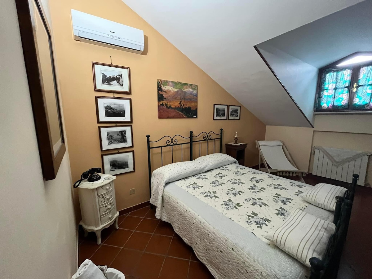 Romantic and bright, this room offers panoramic view of the historic village. With charming details and an intimate atmosphere, it's perfect for an unforgettable stay. Camera romantica e luminosa con vista panoramica sul borgo, dettagli storici e atmosfera intima per un soggiorno indimenticabile.