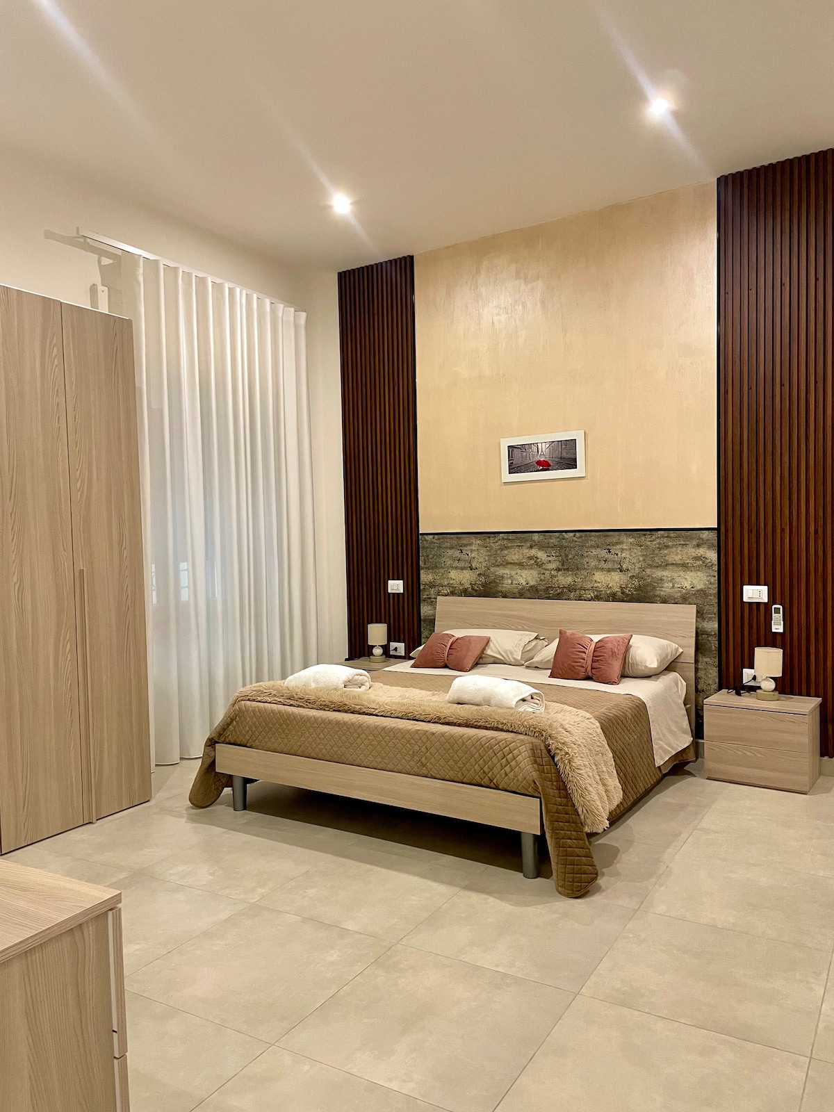 Nel pieno centro storico di Caserta, a soli 250 metri dalla Reggia, questo appartamento unisce eleganza, comfort e posizione ideale. Curato nei dettagli, è perfetto per coppie, famiglie o viaggi di lavoro. Wi-Fi, aria condizionata, cucina attrezzata e ambienti accoglienti per un soggiorno piacevole. Parcheggio privato disponibile su prenotazione. Ti accogliamo con un tocco familiare per farti sentire a casa.