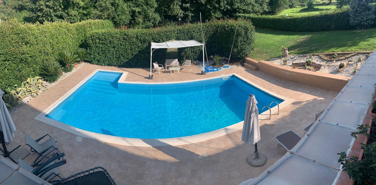 Viviamo nella stessa villetta al piano superiore. L'appartamento è completamente autonomo e indipendente, seminterrato. Fuga dal Caos e dalla città, potrete staccare la spina e immergervi nella tranquillità, senza rinunciare alle vostre comodità!! La piscina è condivisa con la nostra famiglia e altri eventuali ospiti, non preoccuparti potrai lo stesso godere della tua privacy