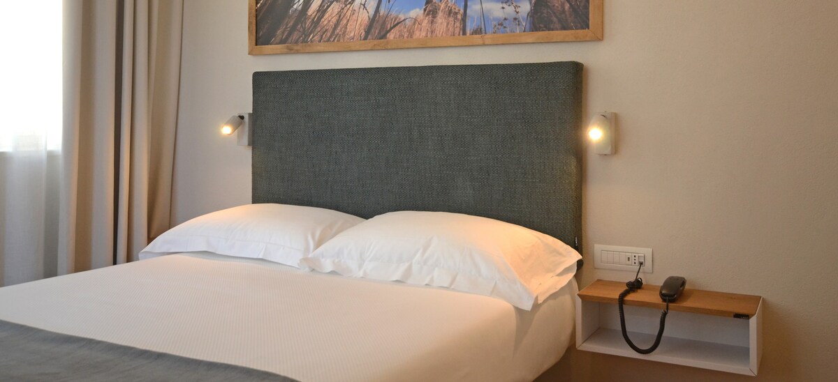 The completely eco-friendly hotel was built to comply with ClimaHotel's sustainability standards. Located on the first and second floors, finely furnished with Lago furniture. The Superior rooms have soundproofed windows, parquet and air conditioning with independent control. Some of them have a balcony.
