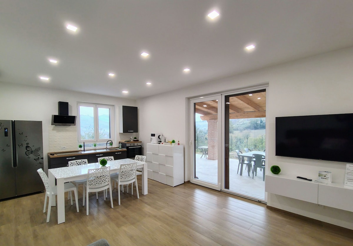 L'appartamento è spazioso e luminoso, con ampie finestre che offrono uno scenario spettacolare sui prati e sulle colline circostanti e una vista unica sulla maestosa Maiella. Gli interni sono arredati con gusto e dotati di tutti i comfort rendendo la tua esperienza di soggiorno piacevole. Goditi il tuo caffè del mattino sulla terrazza, mentre ascolti il canto degli uccelli e ti lasci avvolgere dalla dolce brezza della campagna.