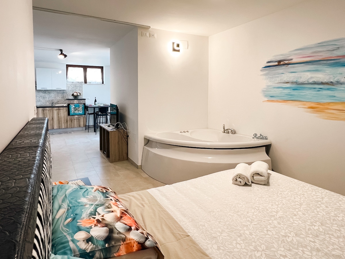 Appartamento Welness Le Chiocciole Un fine settimana romantico per due o una serata tra amici guardando sullo schermo gigante un film o la tua squadra del cuore nell'accogliente sala welness o , per un meeting di lavoro ristretto . Appartamento con Vasca idromassaggio riscaldata, sauna ad infrarossi, tapis roulant, schermo gigante HD, ampia sala con cucina a vista . L'appartamento è situato nella parte bassa dell'edificio con aerazione meccanica forzata .