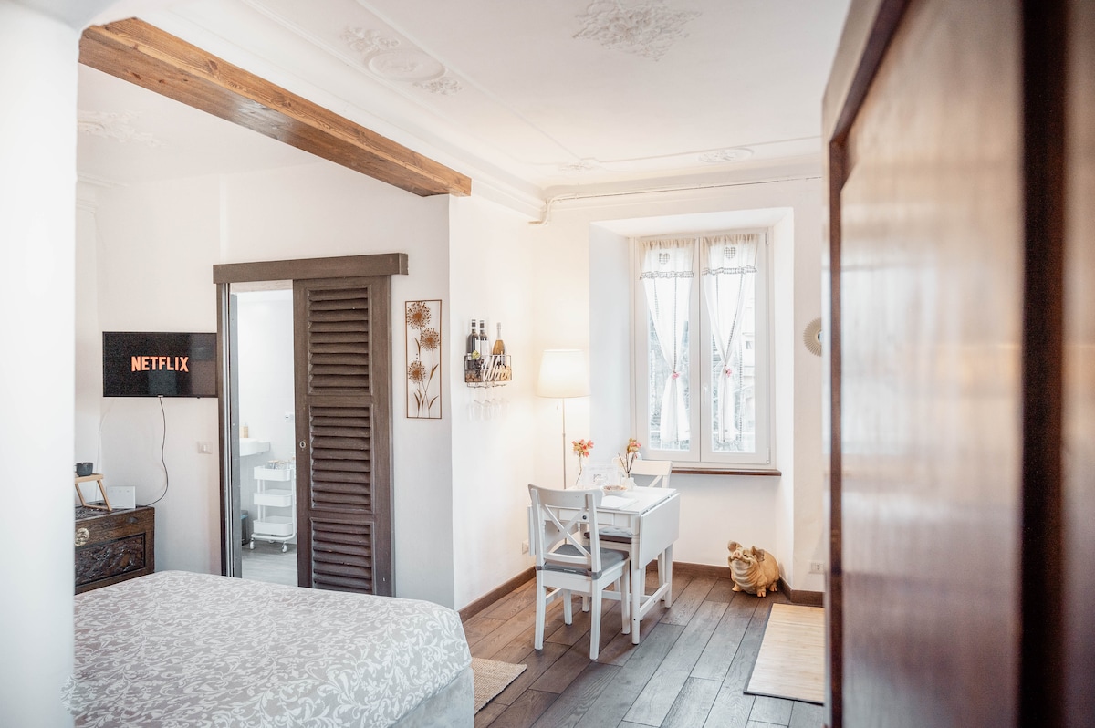 A pochi passi dalla riva, di fronte all’isola Comacina, questa antica casa di borgo è stata ristrutturata valorizzando gli elementi tipici delle abitazioni di lago. Lo spazio: Cucina attrezzata e angolo caffè con macchina nespresso e dolcegusto; bagno con doccia. Salotto con libreria e divano letto. Camera da letto completa con balconcino tipico scorcio lago; smart tv 55 pollici e bagno en suite con doccia. Collegamento a internet gratuito e aria condizionata. Parcheggio privato a pagamento .