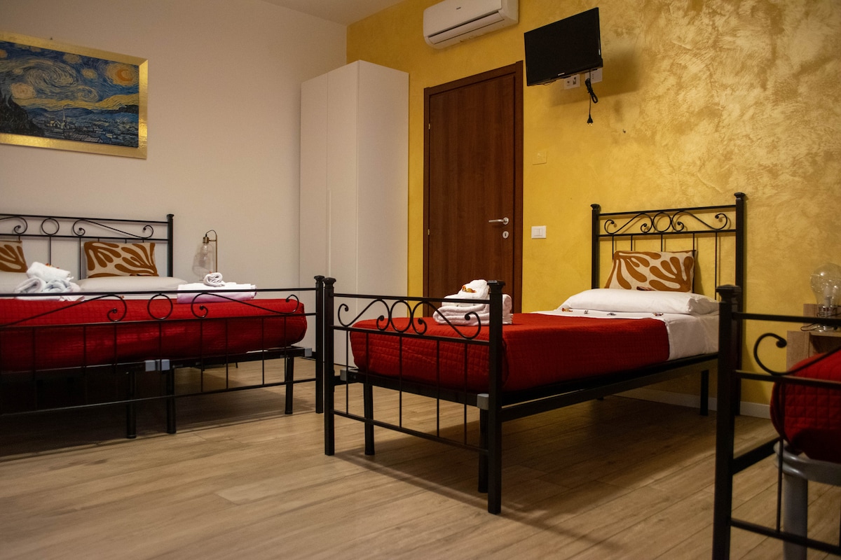 La camere matrimoniali sono dotate dei seguenti servizi: bagno privato, aria condizionata, biancheria inclusa e pavimento in parquet.