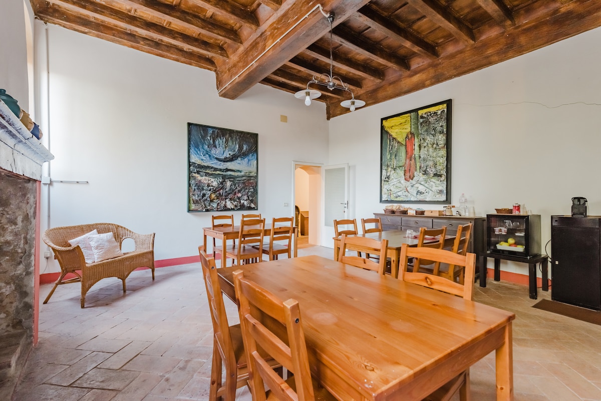 Casa in campagna, ristrutturata nel 2023 classe A4. Una porzione di casa è adibita a B&B; arredata con gusto, con oggetti semplici ma raffinati. I locali sono suddivisi in ampio ingresso, salone per la colazione con divano letto matrimoniale, camera con bagno privato, wifi. Colazione fatta in casa con prodotti tipici sarà servita con cura dalla gestione. Parcheggio privato e giardino interno presentano un ambiente tranquillo. Posizione ideale per partenza escursioni in bicicletta e a piedi.