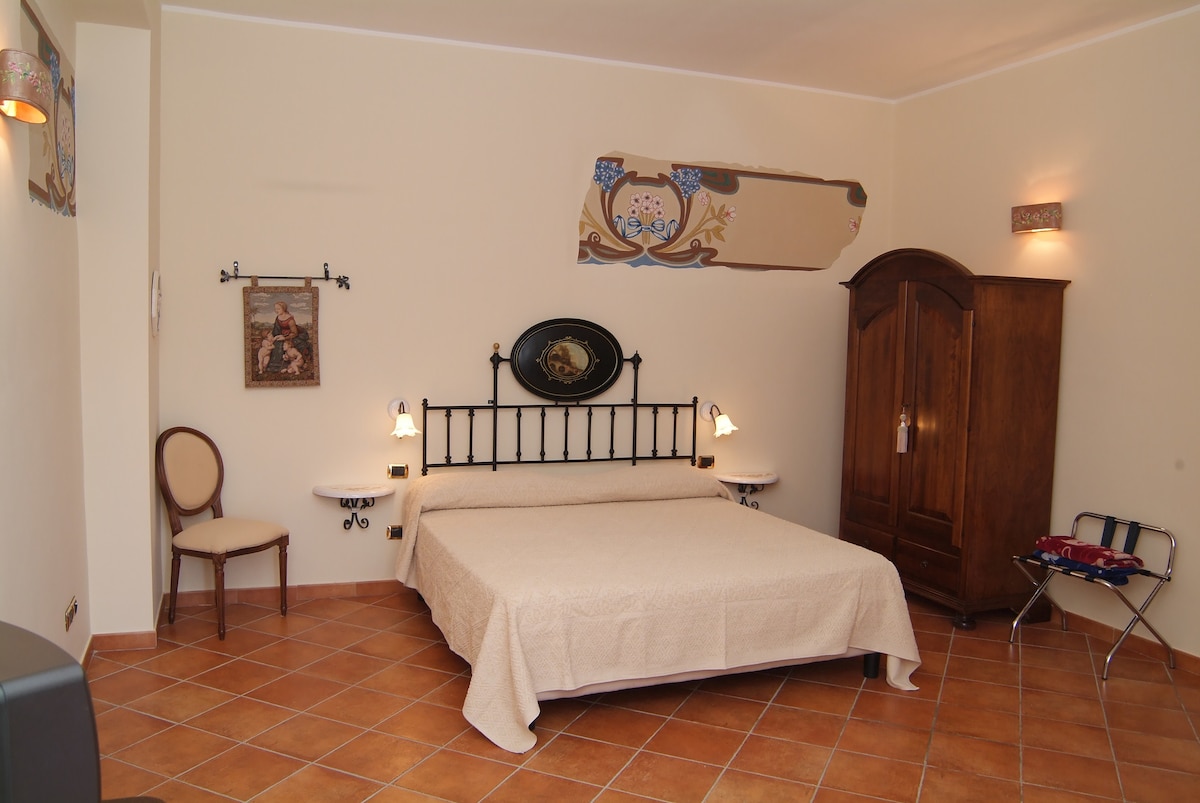 Camera matrimoniale con balcone, bagno privato, condizionatore, tv full hd, con teli doccia, kit cortesia, colazione inclusa.