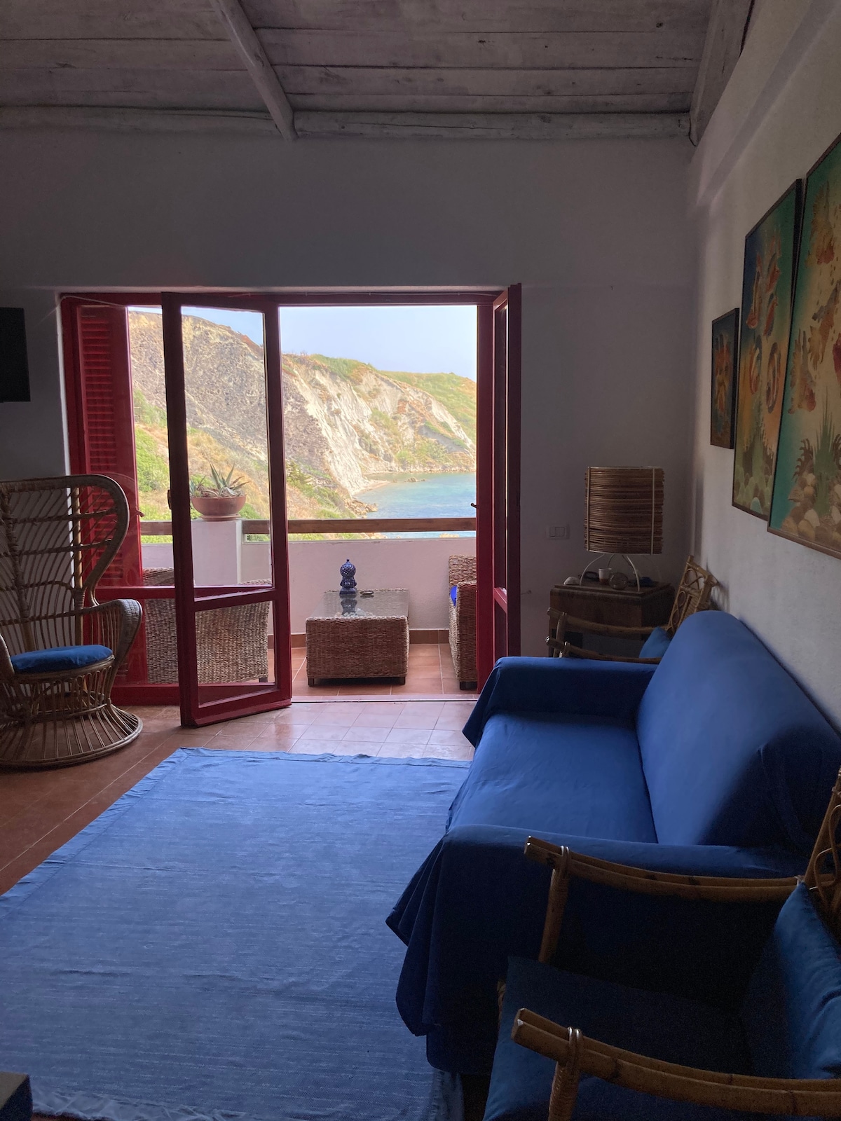 Holiday flat with a far-reaching view over the Ionian Sea. Direct access to Curmo Beach on the doorstep. Quiet location in the sea-protected zone of Capo Rizzuto. For nature lovers a piece of paradise with unspoilt surroundings. Without mass tourism and with a natural environment. 5 kilometres from Crotone airport (Ryanair to and from Milan Bergamo, Bologna and Venice). Daily flights with Skyalps from Rome to Crotone. Transfer from the airport can be organised. From Lamezia Airport 86 km.