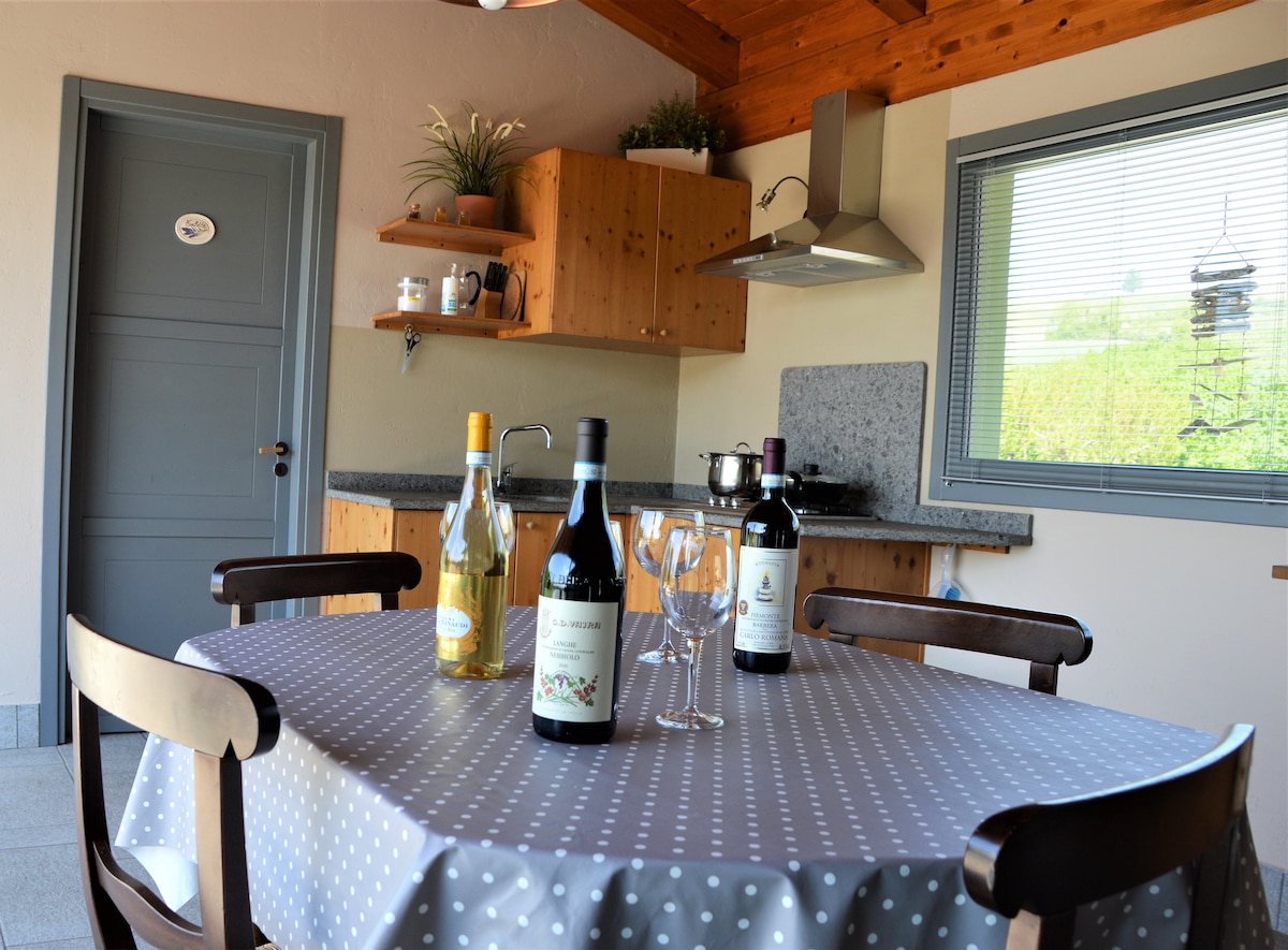 L'appartamento (ADIBITO a B&B) è al piano terra di una casa di campagna situata fra le Langhe ed il Monferrato; è composto di due camere da letto, salotto, zona colazione ed un bagno privato. Le camere si affacciano su un grande terrazzo, dal quale si può accedere al parco che garantisce una piacevole frescura nelle giornate più calde. Oltre al pernottamento ogni mattina viene servita UN'ABBONDANTE COLAZIONE ricca di prodotti locali. NON E' PREVISTO L'USO DELLA CUCINA DA PARTE DELL'OSPITE.
