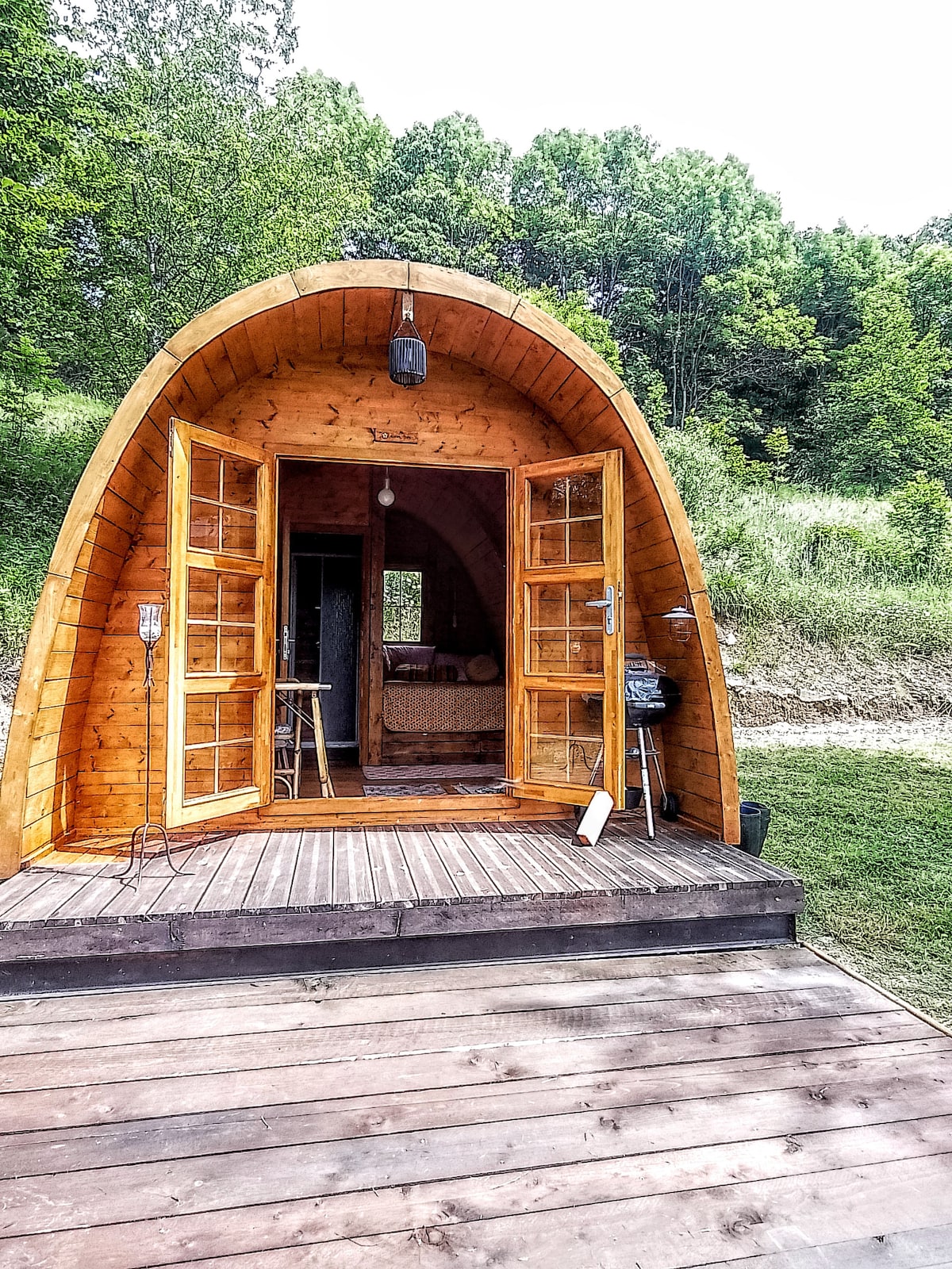 Riconnettiti con la natura con questo indimenticabile soggiorno. Trascorri una notte nella natura, nella nostra casetta in legno che si trova all’interno di un’ ampia area recintata, a esclusivo uso degli ospiti, circondata da profumati alberi di tiglio. All'interno della Tiny House è presente un letto per due persone, un angolo living e il bagno (la doccia è all'esterno, ma ben nascosta).