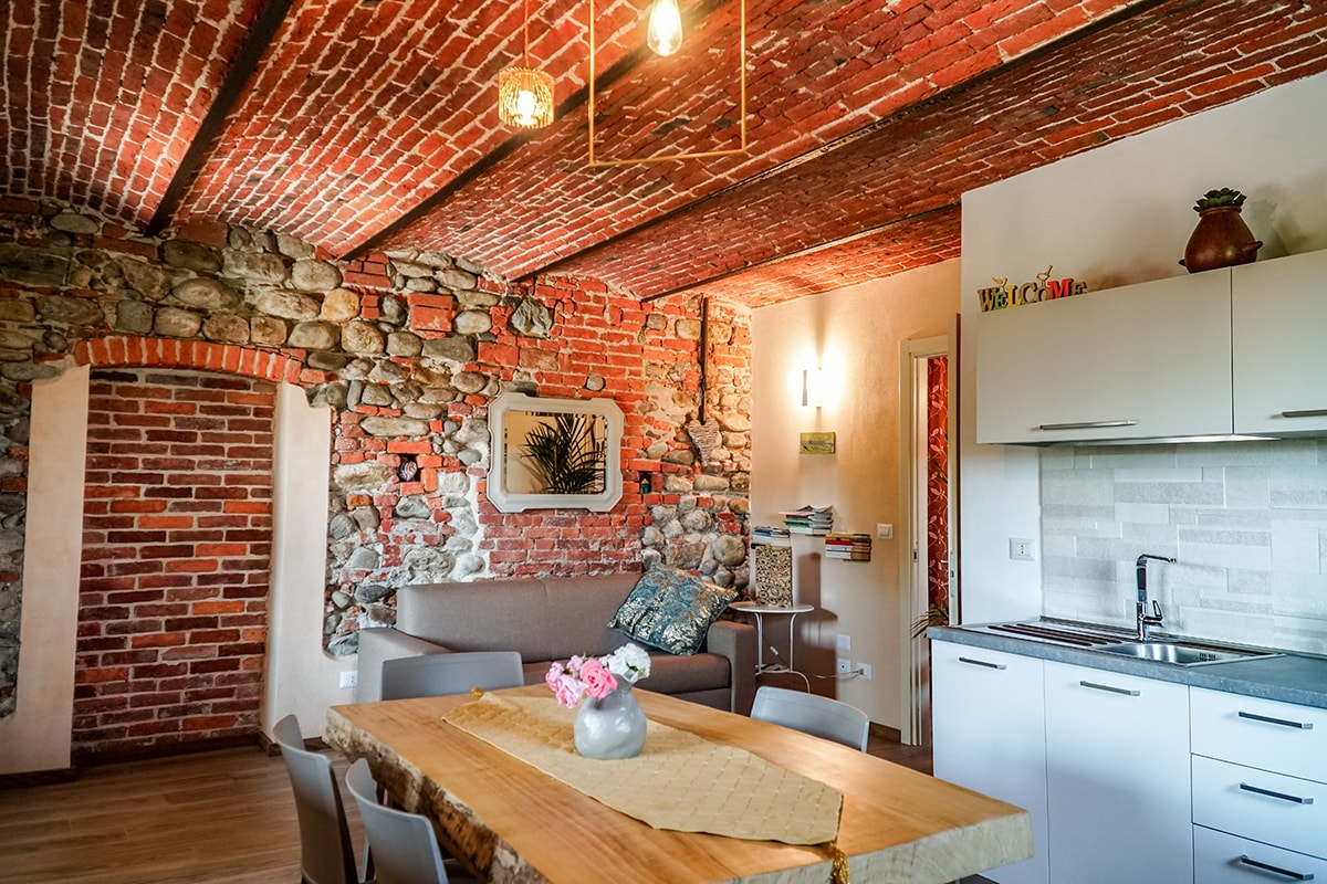 With a breathtaking view of the Langhe, the suite Piazza d'Assi is a uniquely designed apartment on the top floor of Palazzo d'Assi, a medieval building in the historic center of Monforte d'Alba. For couples, families, or friends, Piazza d'Assi is a spacious apartment with a living kitchen, a romantic double bedroom, a double bedroom plus a single bed, and a bathroom with a rustic and refined design. Covered terrace. Restaurants, bars, leisure activities within walking distance.