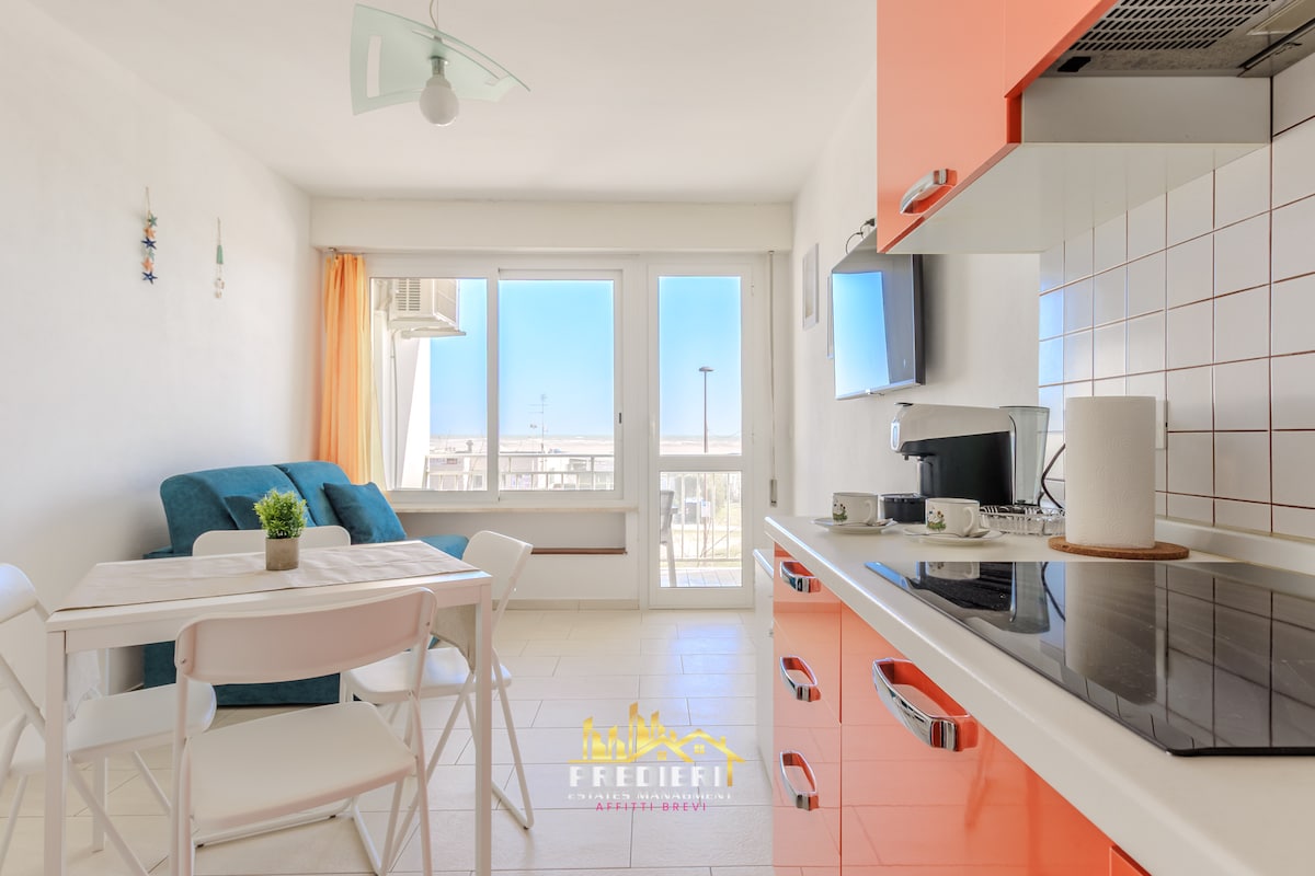 Newly renovated apartment on the beach with 2 bedrooms, kitchenette, living room. Fourth floor with elevators directly on the beach. The apartment will offer the best comfort with air conditioning, 32 "Smart TV, Free Wi-Fi, induction hob, combination microwave, safe. The accommodation will have a comfortable 6/8 seat table to accommodate friends or visiting relatives; was designed to be as versatile as possible.