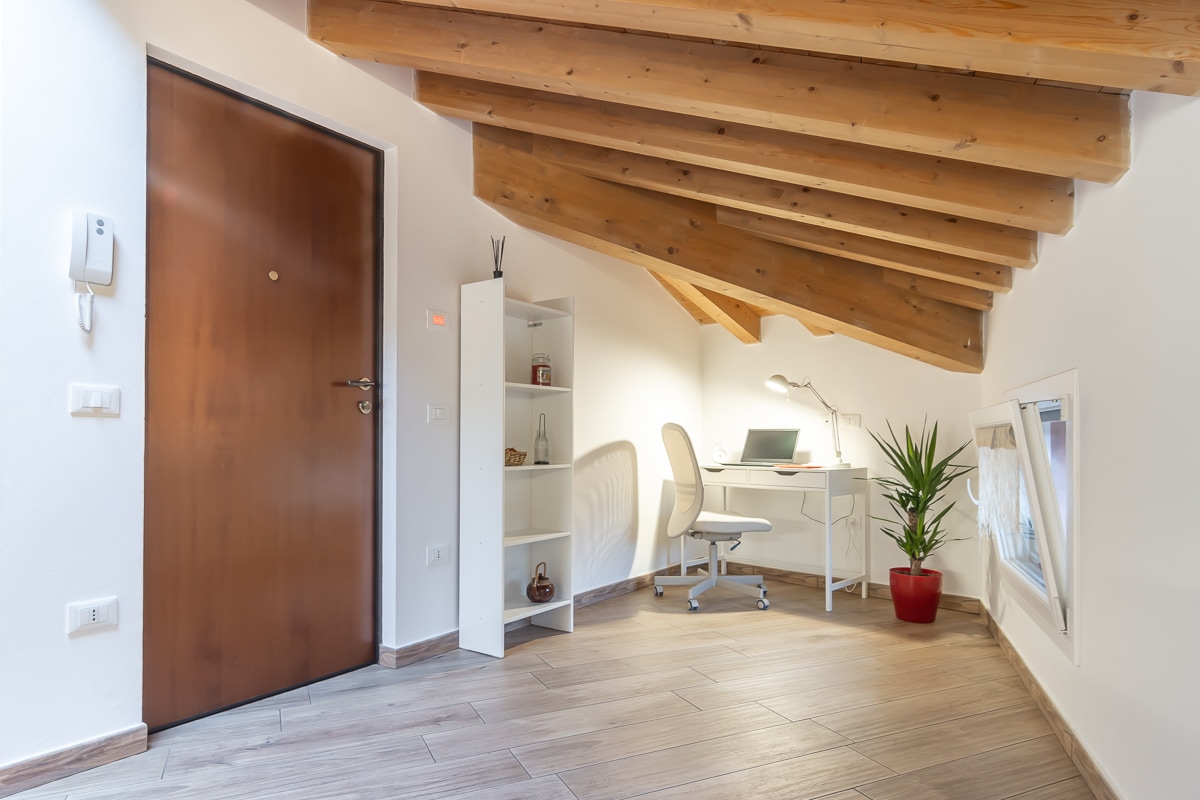 Ti troverai come a casa in questa accogliente e accessoriata camera con tanta luce e tranquillità da un lato c'è il letto e dall'altro l'arredo cucina, condizionatore e armadio, se si preferisce si può usare la cucina in comune con altri ospiti a destra appena entrati dall' ingresso principale