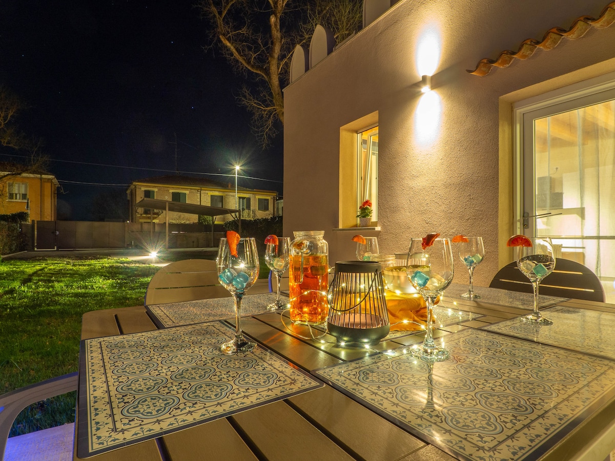 Rilassati e ricaricati in quest'oasi di quiete ed eleganza. Nello splendido paesaggio marino di Porto Garibaldi ad 1 km dal mare, la villa è l’insediamento più antico tra i sette e lidi di Comacchio. Villa Garibaldi è circondata da un parco di 5000 mq con varie essenze arboree tra cui un ulivo secolare, un sughero e romantici salici. Il parco offre aree ideali per chi cerca la quiete ed il relax, inoltre la terrazza della suite offre un panorama e tramonti meravigliosi delle valli di Comacchio.