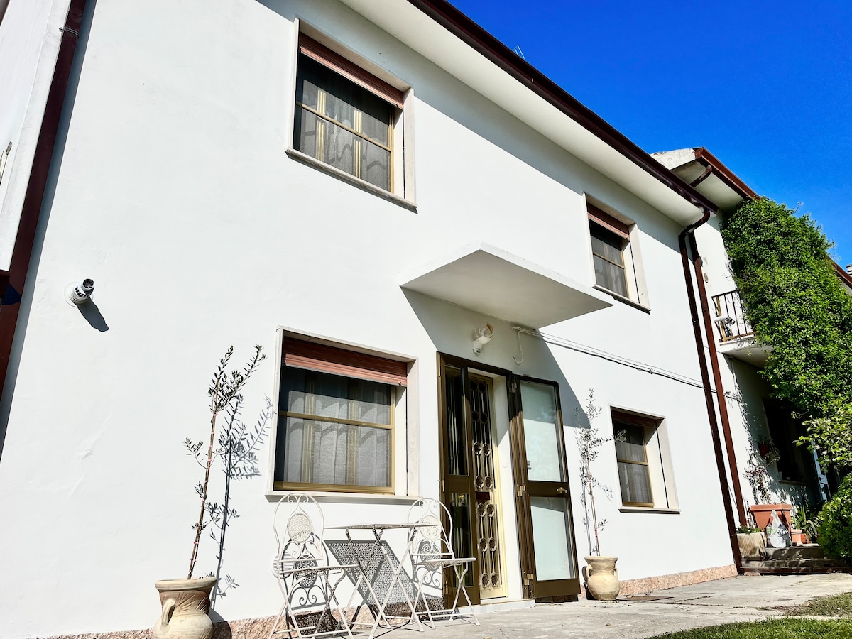 La Villetta nel Delta is a stylishly renovated retreat with a lush garden, offering 2 spacious bedrooms overlooking Canale Bianco, a cozy living area, a modern kitchen, and 2 sleek bathrooms. Enjoy hotel-style comfort with towels, linens, slippers, and toiletries provided. The home includes 3 large flat-screen TVs, a washer-dryer, air-conditioning and mini-fridges in each bedroom, free WI-FI and private parking. Guests receive a complimentary drinks package—soft drinks, beer, and local wine.