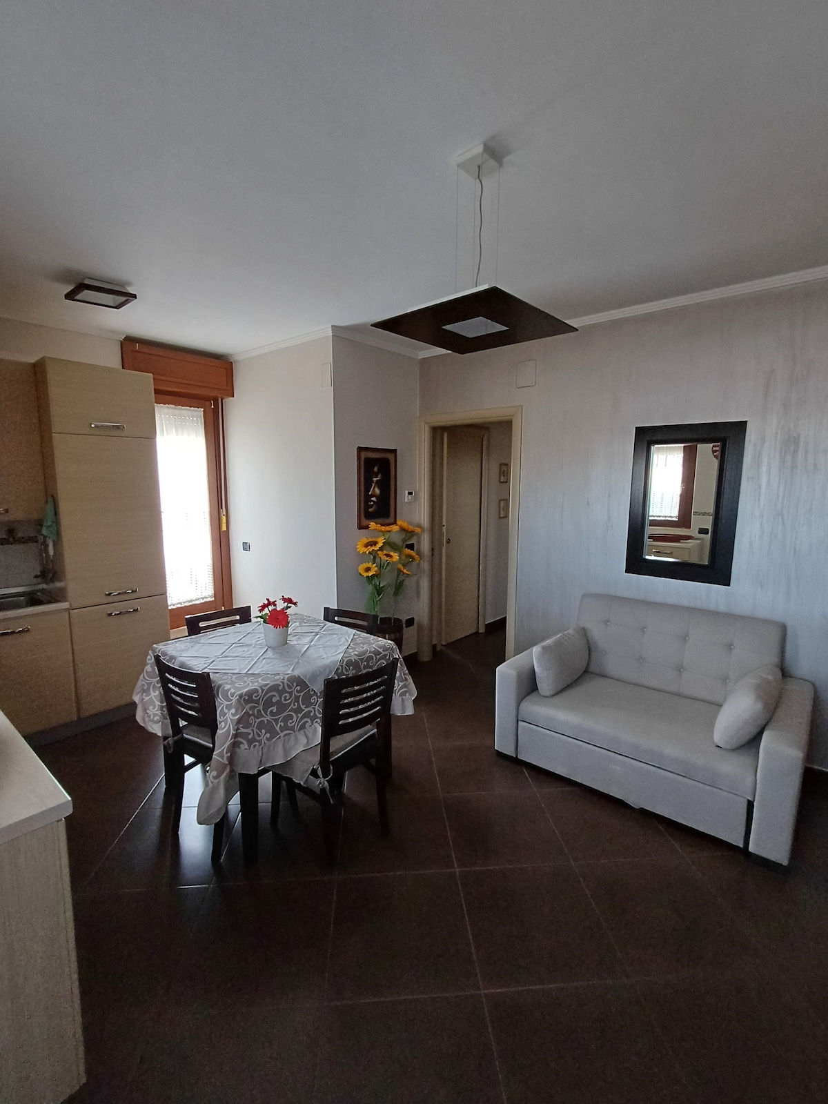 Welcome to your retreat of Light, Space and Relaxation: the ideal base to discover the best of the Gargano. 100 sqm – Spacious, modern and functional apartment featuring: 2 bedrooms + 2 bathrooms + fully equipped kitchen + large living area + 2 balconies. Excellent location just a few steps from the sea and the historic center of Manfredonia, an official City of Art since 2005, known as the Gateway to the Gargano. Perfect for a family or a group of friends seeking space, privacy and quality.