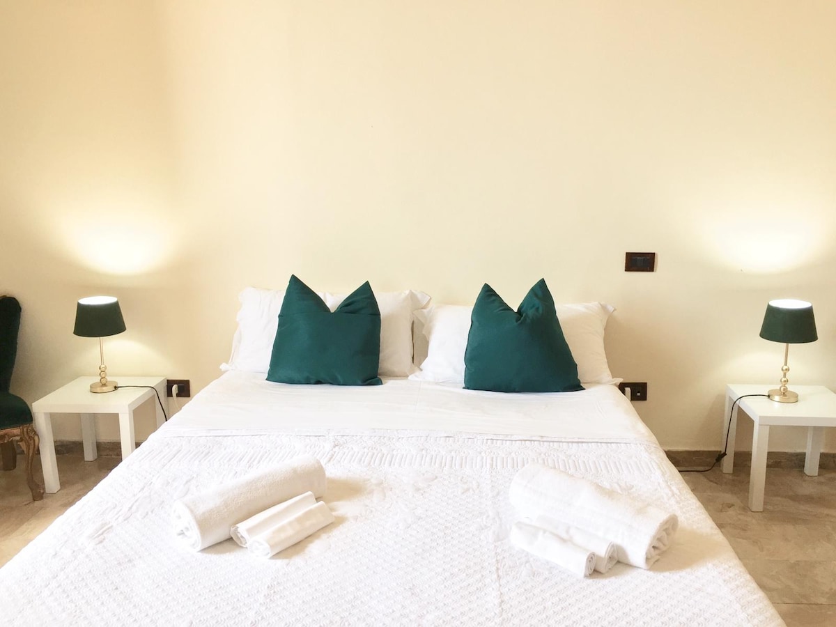 Camera doppia di mq. 25 con camino, letto matrimoniale o due letti singoli e ingresso nel cortile interno della masseria. Questa camera risale alla seconda metà del 1800, un tempo casa di Coloni. Letto in legno massello di pino ed olivo, materasso in lattice naturale, lenzuola ed asciugamani di cotone grezzo, lavandino di terra cotta, saponi all'olio di oliva. Dettagli minuziosamente studiati per lasciare che l'energia circoli respirando i sapori di una volta. CIS: BT11000151000004847