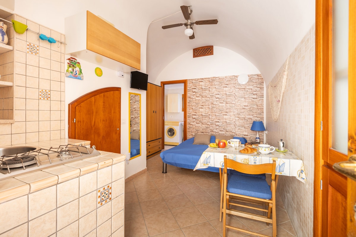 Rilassati in questo spazio tranquillo in posizione centrale, al piano terra della nostra palazzina in una via privata, dotato di ampio open space con angolo cottura, aria condizionata, camera matrimoniale e bagno. Dista soli 50 metri dal mare ed è adatto anche a disabili e persone con mobilità ridotta in quanto non ci sono scale per accedervi. Si accede al bagno tramite una comoda porta con maniglione antipanico, la doccia e il water sono utilizzabili da persone con disabilità.