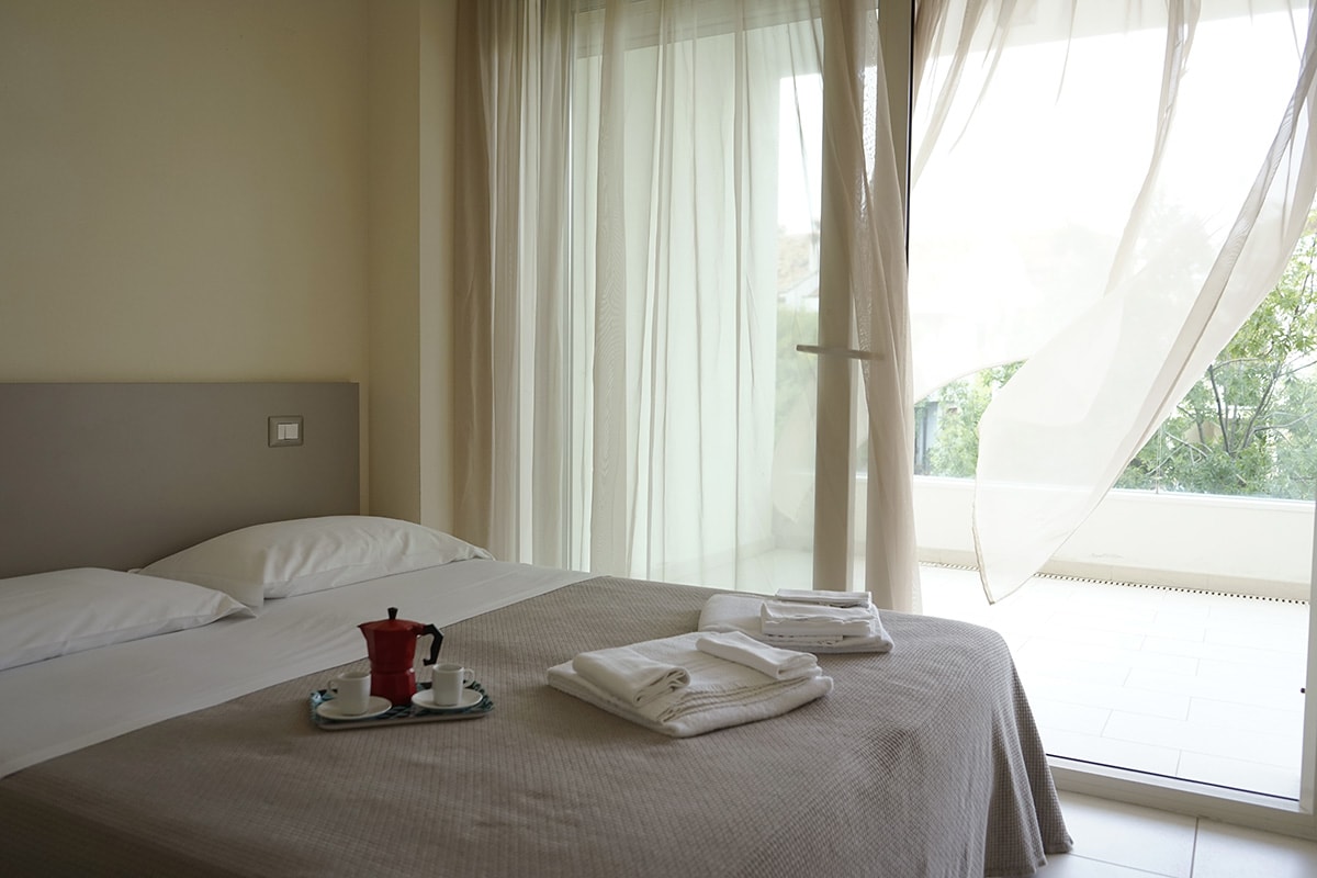 L'appartamento è all'ultimo piano di un condominio a 100 metri dal mare, e ogni stanza da sulla terrazza che è vista mare, con ampia tettoia, in modo che dopo il primo mattino l’appartamento è già in ombra e quindi è particolarmente fresco e ventilato. Nella terrazza ci si può anche mangiare. Vi è un pianoforte verticale Bechstein, accordato e revisionato, per musicisti che vogliono mantenersi in allenamento anche in vacanza.