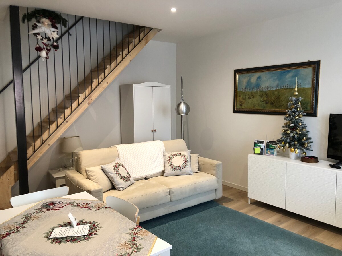 Goditi una vacanza all'insegna dello stile in questo spazio in centro. L’appartamento si sviluppa su due livelli, con un ampia camera da letto con bagno adiacente posta al primo piano. Al piano terra si trova un ampio soggiorno con angolo cottura e divano letto matrimoniale. La casa e’ dotata di tutti i confort, aria condizionata, frigo, lavatrice , bollitore , macchina da caffè Nespresso , tostapane, tv con Netflix, Prime Tv , Disney Channel, ferro da stiro , etc …