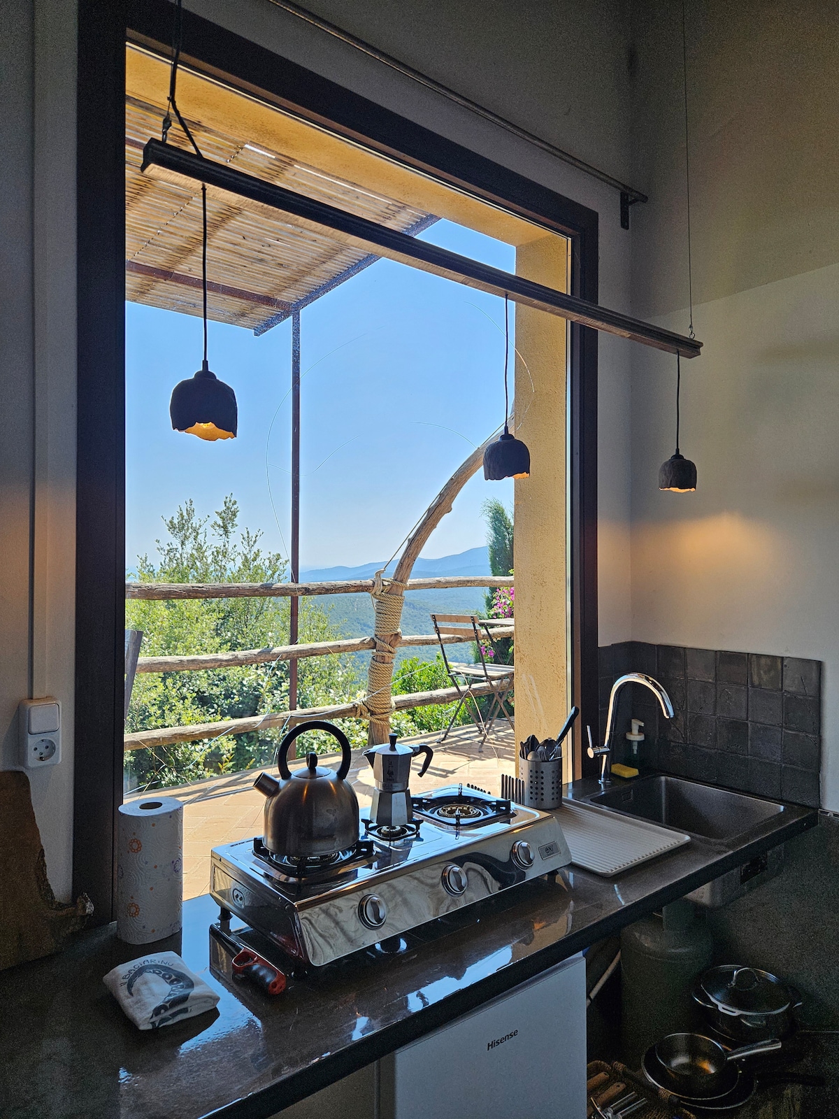 Ontspan en kom tot rust in deze vredige, stijlvolle ruimte. midden tussen de eiken bomen en de olijfgaard met prive terras en panorama waar men helemaal tot rust komt de kamer is voorzien met een kingsize bed en een ruime badkamer