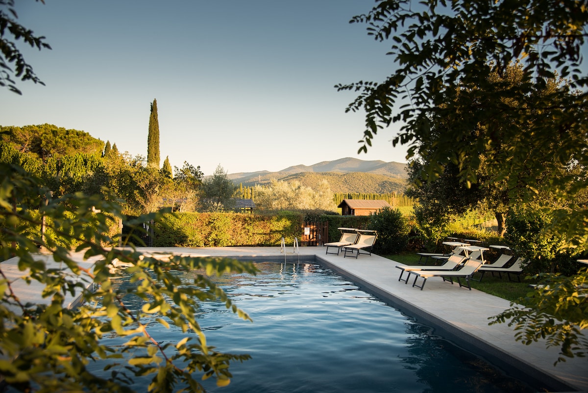 Stay in this 1 bedroom apartment in a Tuscany old farmhouse with a great location to experience what Tuscany offers. The house is located in the beautiful Tuscan landscape surrounded by vineyards and olive groves, in the stunning Tuscan hills. You can from this location explore medieval towns. 1 hour from Florence. Arezzo and Siena within 1/2 hour drive. Montepulciano 15 min drive. The apartment is located in Villa Poggio Becchi. Private entrance. Private bathroom and kitchen/living area.