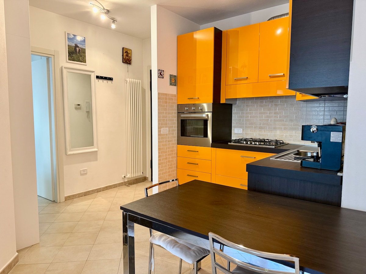 Cozy and functional, this second-floor apartment with elevator is the perfect base to explore Grosseto and the Maremma. Just 5 minutes from the center and 15 from the station, it offers a full kitchen, dining and lounge area, bedroom with en-suite, and terrace with table, chairs, washer and dryer. Includes private indoor parking. Ideal for couples, travelers, or anyone seeking comfort and convenience in a strategic location.