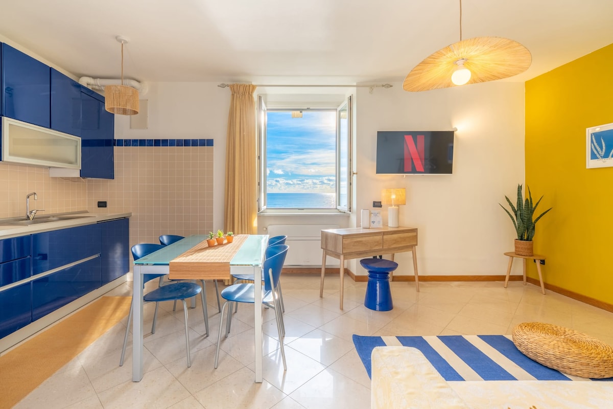 appartamento al 1o piano completamente ristrutturato nel 2021 -completo di tutto eccetto lavatrice(lavanderia a 200mt) -terrazzo -smart tv 41" no via cavo -postazione di lavoro -self check entro i 50mt:porto antico, ristoranti e bar, mercato con prodotti locali, parcheggi a pagamento entro i 200mt:spiagge a pagamento o libere(sabbia e pietre), parcheggi liberi >> posizione centrale ma molto silenziosa, ideale per chi volesse anche lavorare in remoto e avesse bisogno di un pò di concentrazione