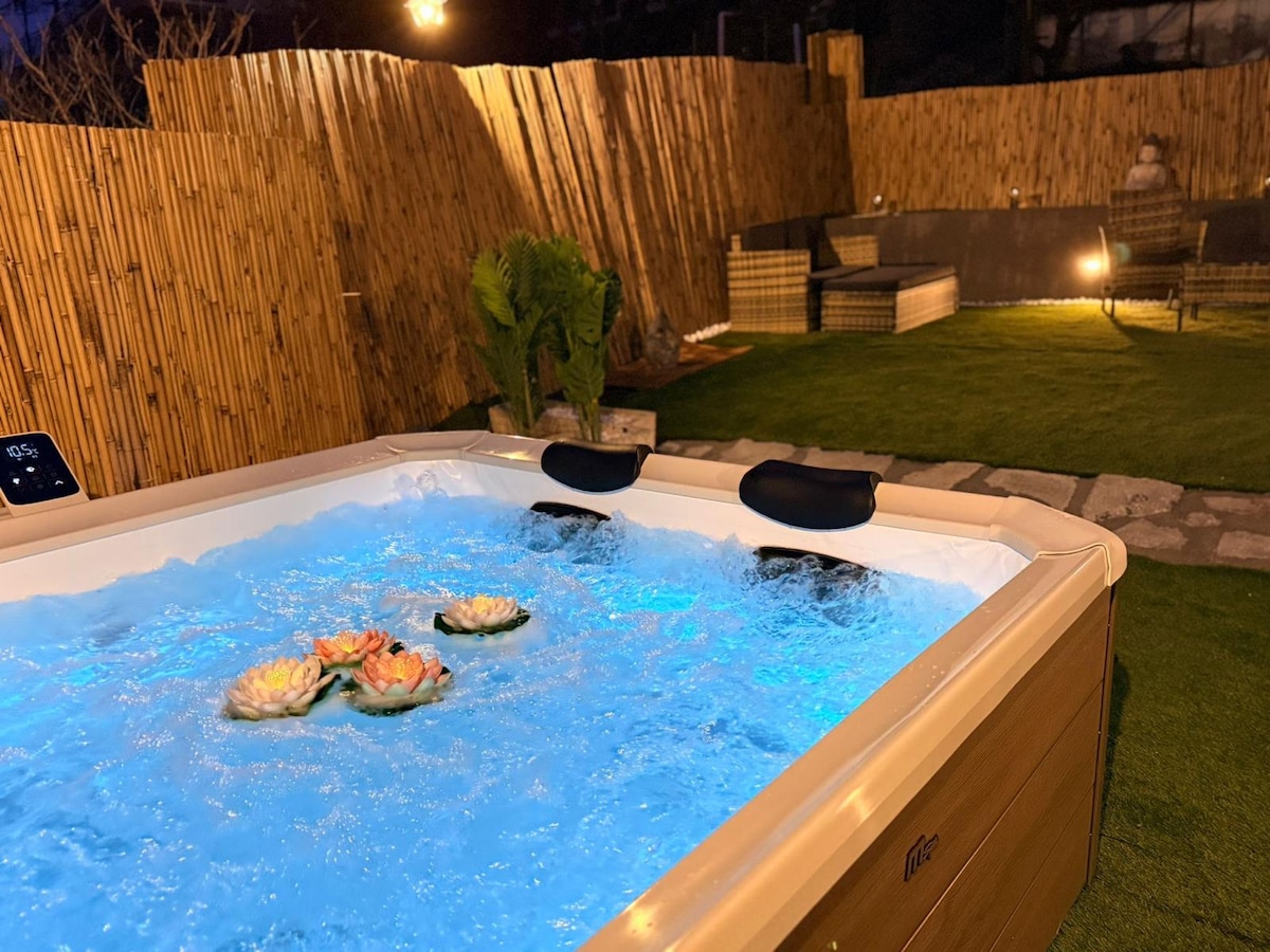 距离海边 10 分钟车程的带按摩浴缸和花园的度假胜地