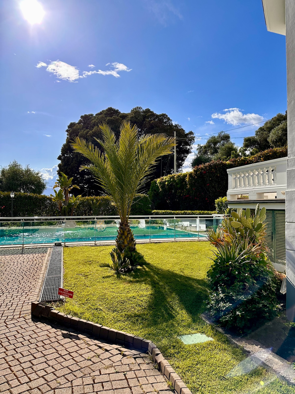 Scirocco apartment is nestled in a large garden, in a very quiet setting, away from traffic noise and smog, surrounded by olive trees, pine trees, and oak trees. The unobstructed views extend from the sea to the mountains. The apartment's doors open directly onto the solarium and pool. Our guests have access to a spa featuring an outdoor hot tub overlooking the hills, a sauna, a Turkish bath, a shower, and a solarium.
