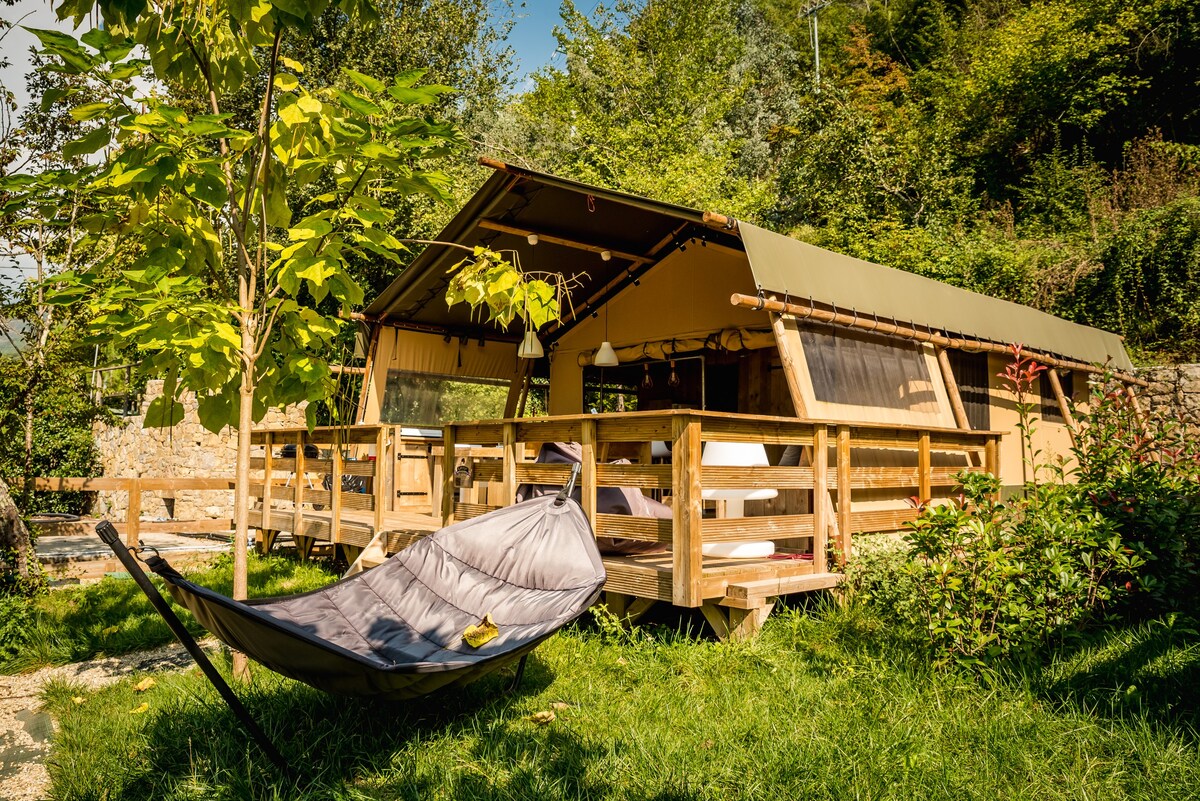 Located in the green hills of Liguria, Stecadò Glamping offers a unique experience immersed in nature and tranquility, perfect for those looking for an escape from the daily bustle. Our tents allow you to spend a relaxing stay; they are equipped with all the necessary comforts, including a heated hot tub for exclusive use. We are a small family-run business, and our priority is to make you feel at home.