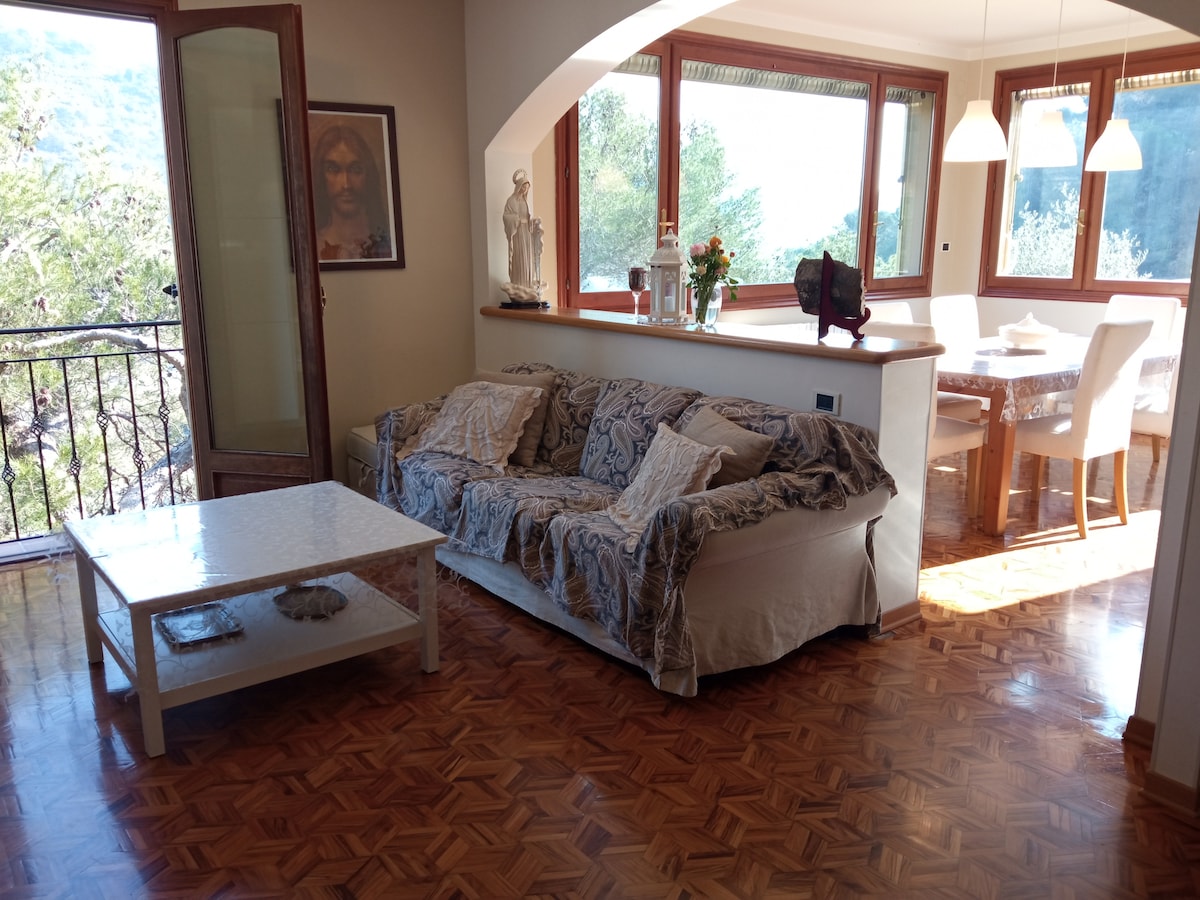 Elegante villa immersa tra gli ulivi di un grande giardino a balze. Ampio e luminoso salotto dotato di televisione, stanza padronale con bagno privato e TV, camera matrimoniale con bagno privato e terrazzo con accesso indipendente. Cucina attrezzata e abitabile collegata a veranda/camera da pranzo. Dependance con camera doppia (due letti singoli), bagno privato e area esterna coperta. Stanza lavanderia a disposizione. Parcheggio doppio privato coperto e ulteriore posto auto privato esterno.