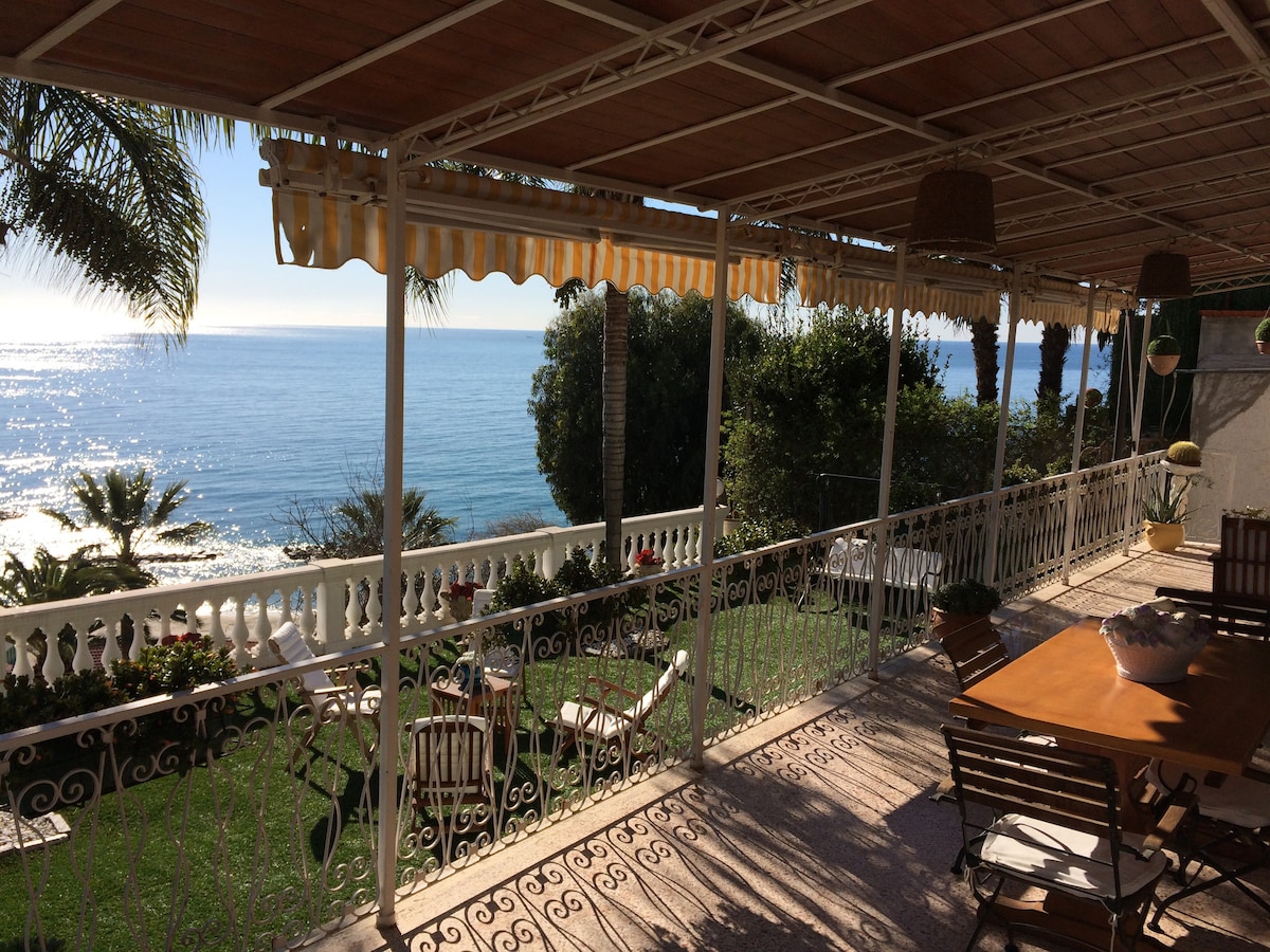 Ultimo piano a picco sul mare, moderno e finemente arredato, si trova sopra la bellissima spiaggia di sabbia le Calandre ( 10 min a piedi), a un passo dal borgo medievale a 3 km dai giardini Hanbury Ci sono due camere con letto matrimoniale (tutte climatizzate), due bagni, di cui uno con vasca idromassaggio e uno con doccia, cucina attrezzata con piastre a induzione e ampia zona giorno con divano letto. Grande balcone, ideale per gustare i vostri pasti con splendida vista sulla Costa Azzurra.