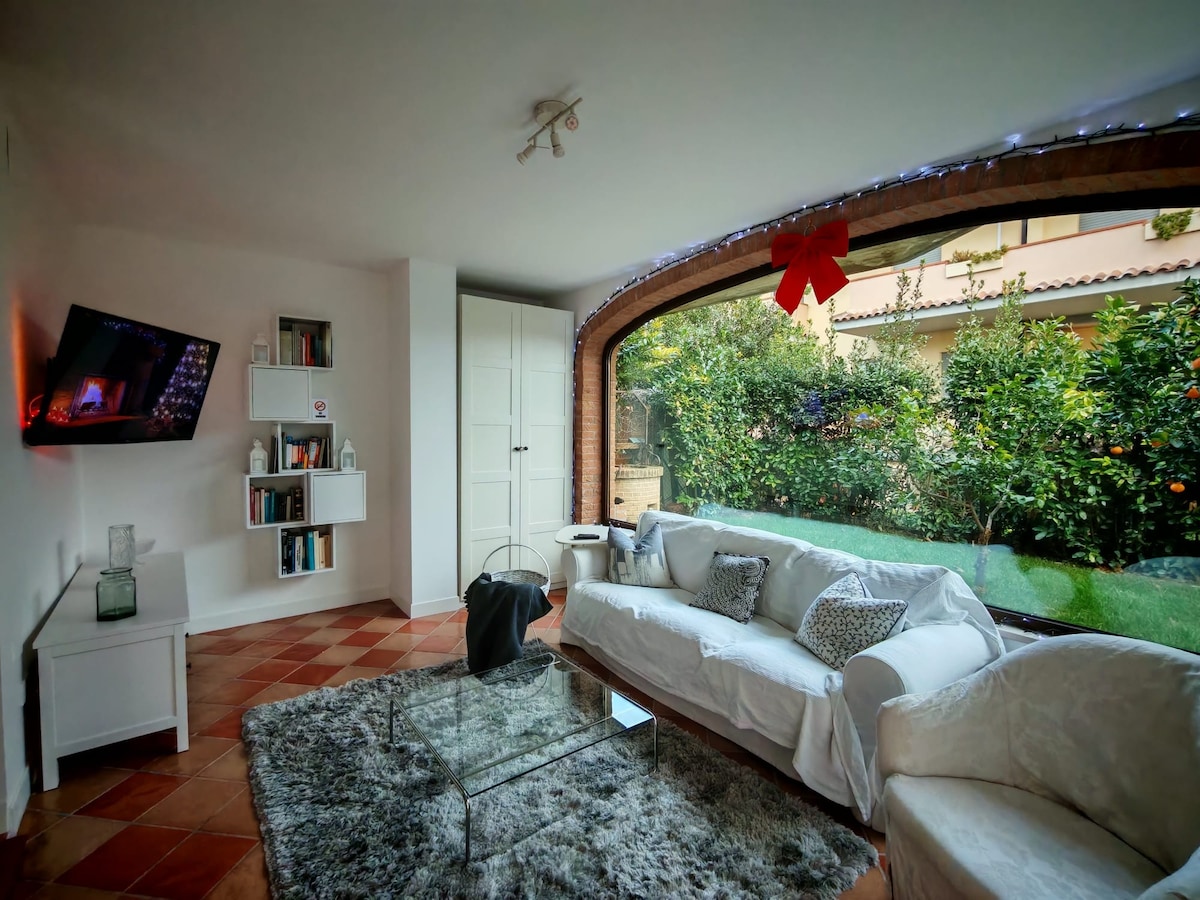 Carissimi ospiti, avrete a disposizione un appartamento con giardino in una villa a pochi passi dal mare e dalla pineta. La casa dispone di un'ampia cucina con accesso diretto al fresco giardino attrezzato dove potrete consumare le vostre colazioni e cene durante la bella stagione, ma troverete anche un camino ed un magnifico bagno con idromassaggio per le vostre serate invernali. L'elegante camera da letto ed il grande salone con divano letto e TV completano la casa.