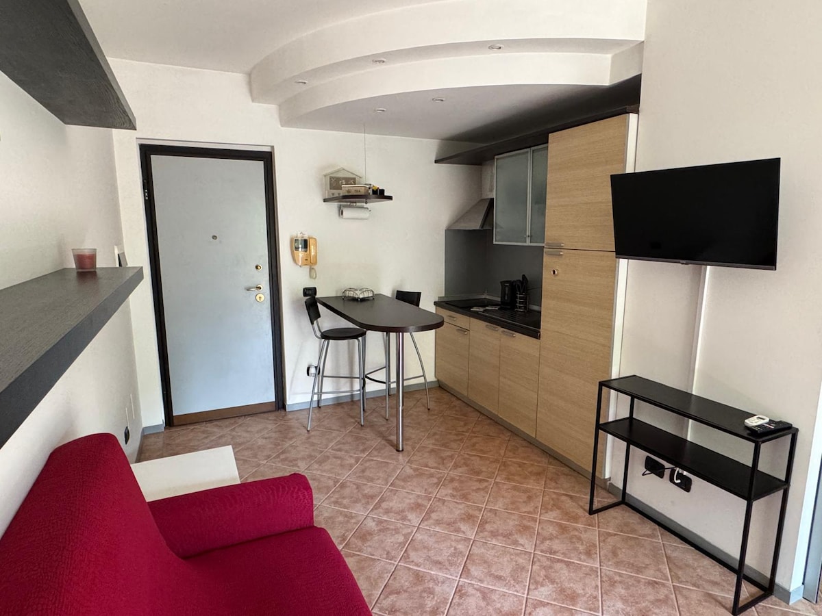 Accogliente bilocale a soli 10 minuti dal centro, con esposizione a Sud che regala una luce naturale vivace. Dotato di soggiorno con Smart TV, angolo cottura completo, camera da letto climatizzata, bagno funzionale e balcone arredato. Include posto auto riservato e palestra condominiale, il tutto in una zona servita e tranquilla, perfetta per un soggiorno confortevole.