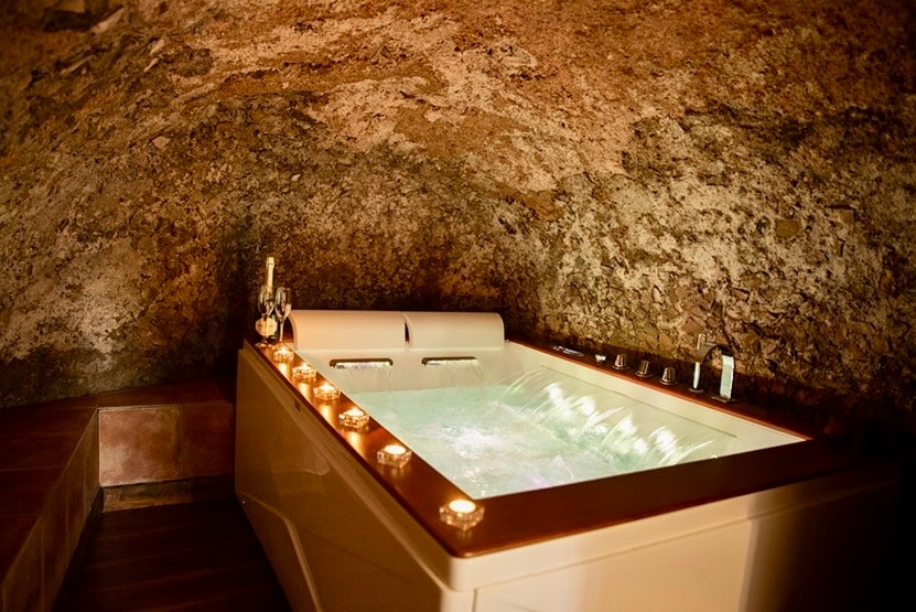 Arpinum Divinum è un luogo magico dove fermare il tempo e godersi l'emozione di un tramonto panoramico sull'antica città di Arpino e sperimentare momenti di assoluto relax e benessere. La combinazione di varie elementi, come la vasca idromassaggio, la cromoterapia, la vista panoramica e l'accogliente camino del 1700 rendono quest'esperienza unica e indimenticabile. La vasca idromassaggio è il cuore pulsante di questa suite emozionale. Un loft panoramico intriso di storia, magia e calore.