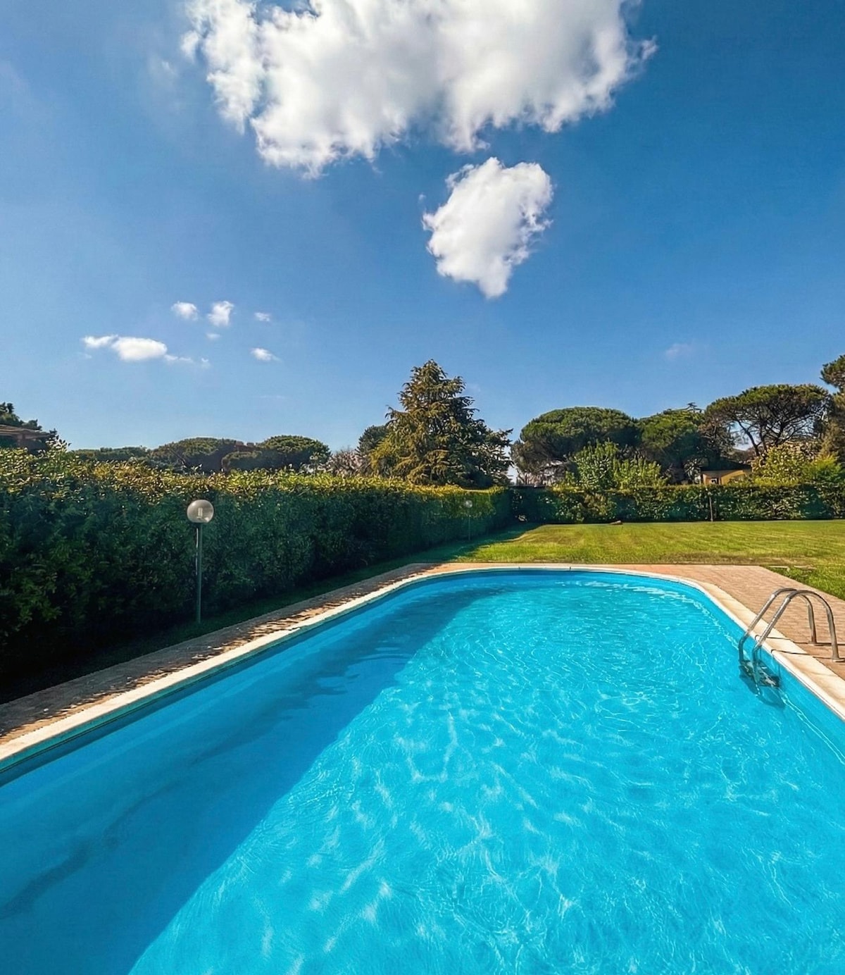 Near the characteristic village of Maranola, not far from Formia, is located the charming Villa, decorated in a cozy country style, surrounded by a beautiful garden of oaks, holm oaks and olive trees. The natural swimming pool surronded by rocks will be open from the second half of May to the second half of October