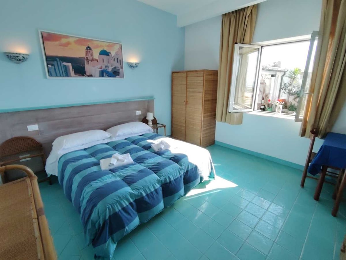 GELSOMINO - (SU24mq) - Monolocale attrezzato con angolo cottura, bagno e letto matrimoniale con possibilità di due singoli, prospiciente piccolo giardino esterno con vista mare laterale.