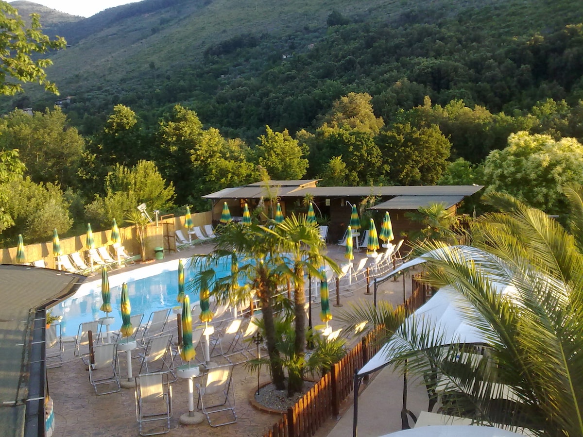 Location adiacente un accogliente complesso estivo dove troverete ristorante,bar,piscina (inclusa nel prezzo del pernottamento con sdraio e ombrellone) , palestra, jacuzzi e sauna(a pagamento) e area giochi per bambini! la zona è circondata dal verde : uliveto,alberi da frutta : un vero angolo di paradiso immerso nella natura. Il centro di Sonnino dista soli 3 km e le spiagge più vicine sono a solo 20 minuti di auto: Sabaudia,Terracina e San Felice Circeo. Parcheggio auto incluso nel prezzo.
