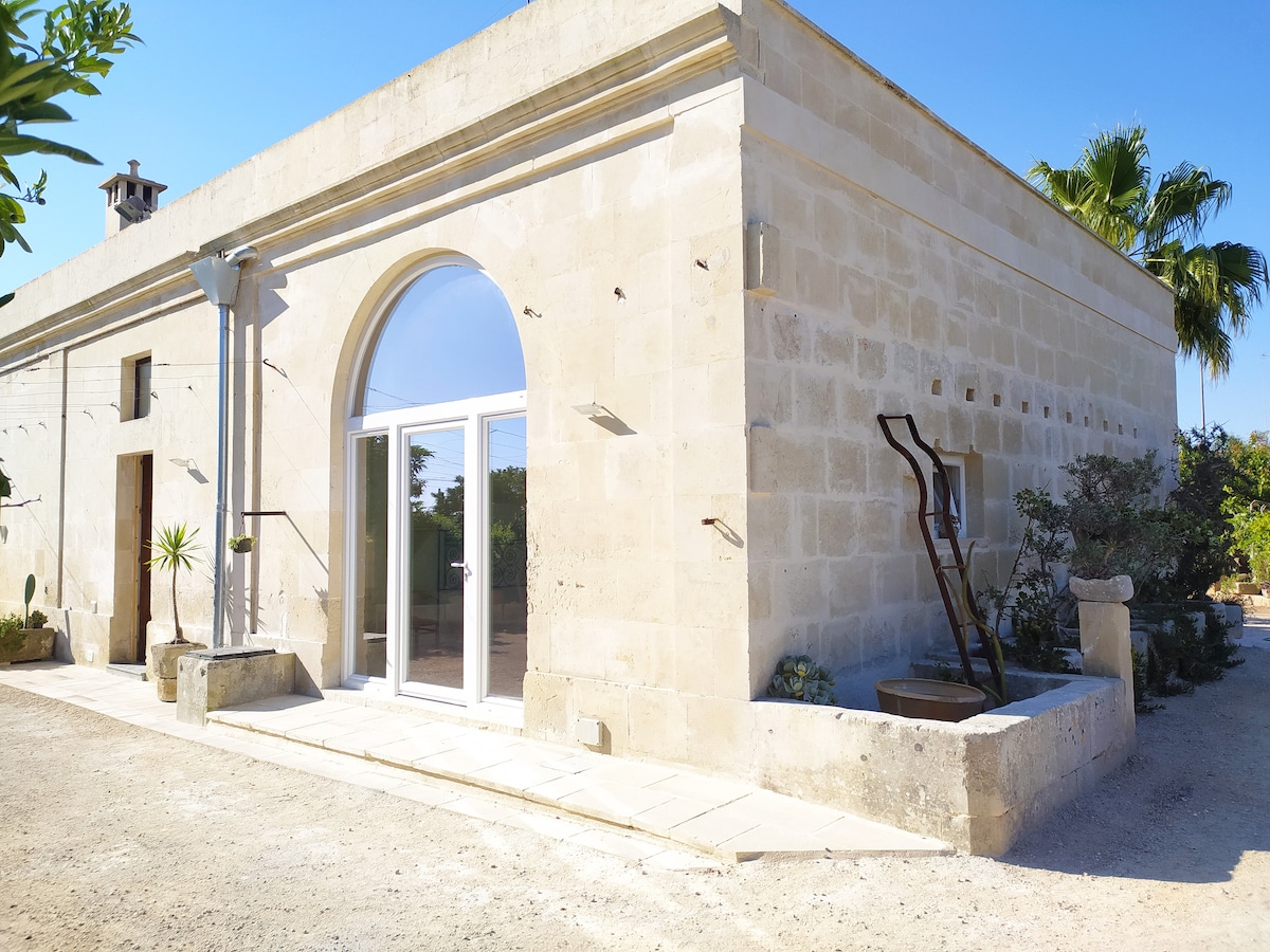 The guest house Giardino Frannicola and its lush garden celebrate « farniente » and offer you an authentic stay in an old farmhouse heatedly restored. Once you enter the gate, a beautiful garden with apricots, plums, pears (and more) will welcome you. Each room had their own entrance and an access to the garden. The restoration’s aim was to preserve the original structure and all the materials used are local: Lecce stone for the patios and Trani marble for the floors and bathrooms coatings.