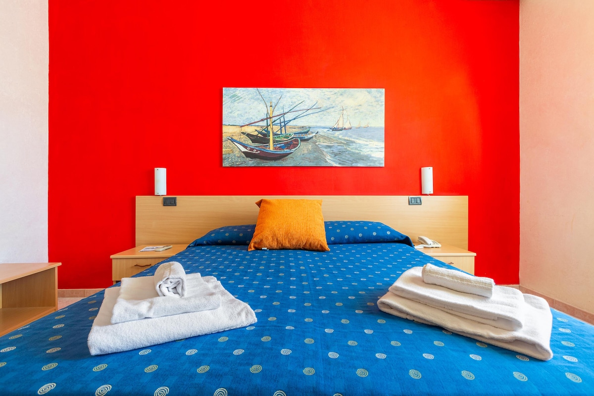 • Standard Double Room with Bunk Bed • This room is designed for a comfortable and practical stay, ideal for couples or families with children. The space is thoughtfully furnished and offers all the essential comforts for up to 4 guests: • One double bed and one bunk bed • Bed linen and towels included • Private full bathroom • LCD TV • Independent air conditioning • Safety deposit box