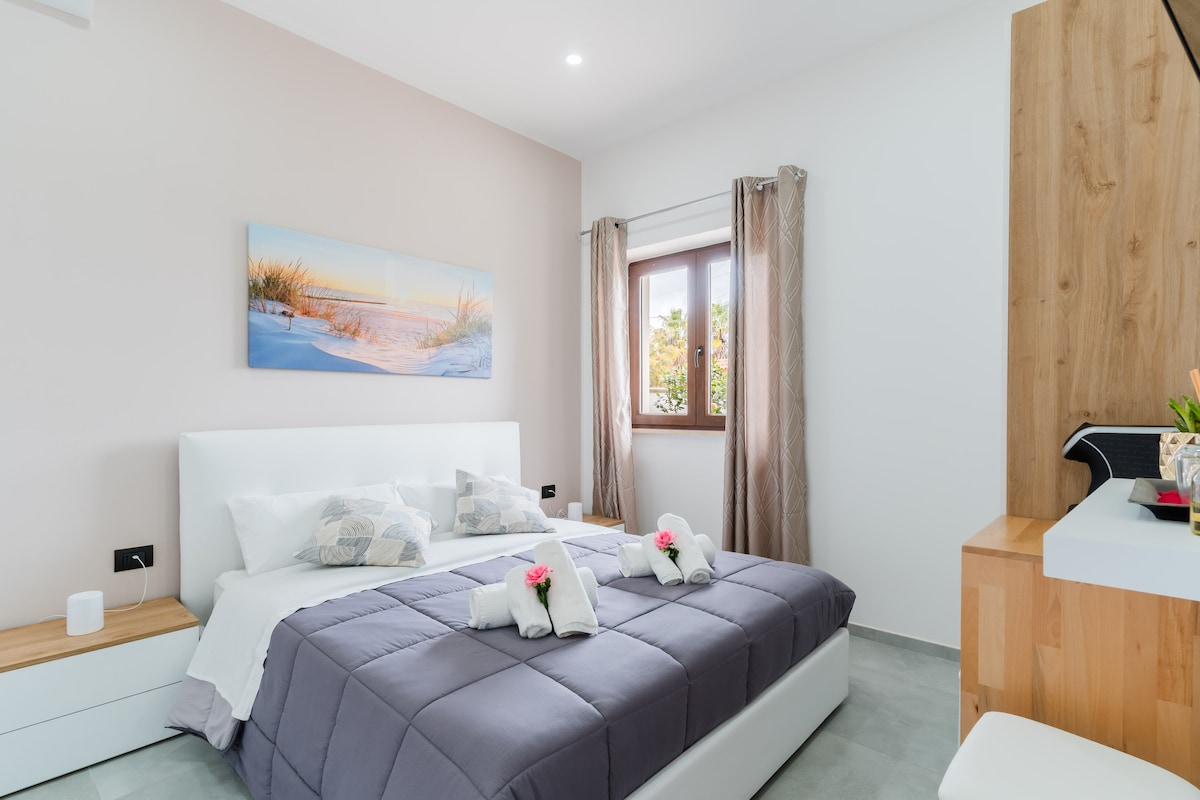 The Room Masseria Scafazzi - Azzurra - 9 is located in Presicce and is perfect for an unforgettable holiday with your loved ones. The 75 m² property consists of 1 bedroom and 2 bathrooms and can therefore accommodate 4 people. Additional amenities include Wi-Fi, a smart TV with streaming services, air conditioning as well as beach/pool towels. In addition, a table tennis table is available for your use. Enjoy relaxing evenings on private terraces, both open and covered, at this vacation rental.