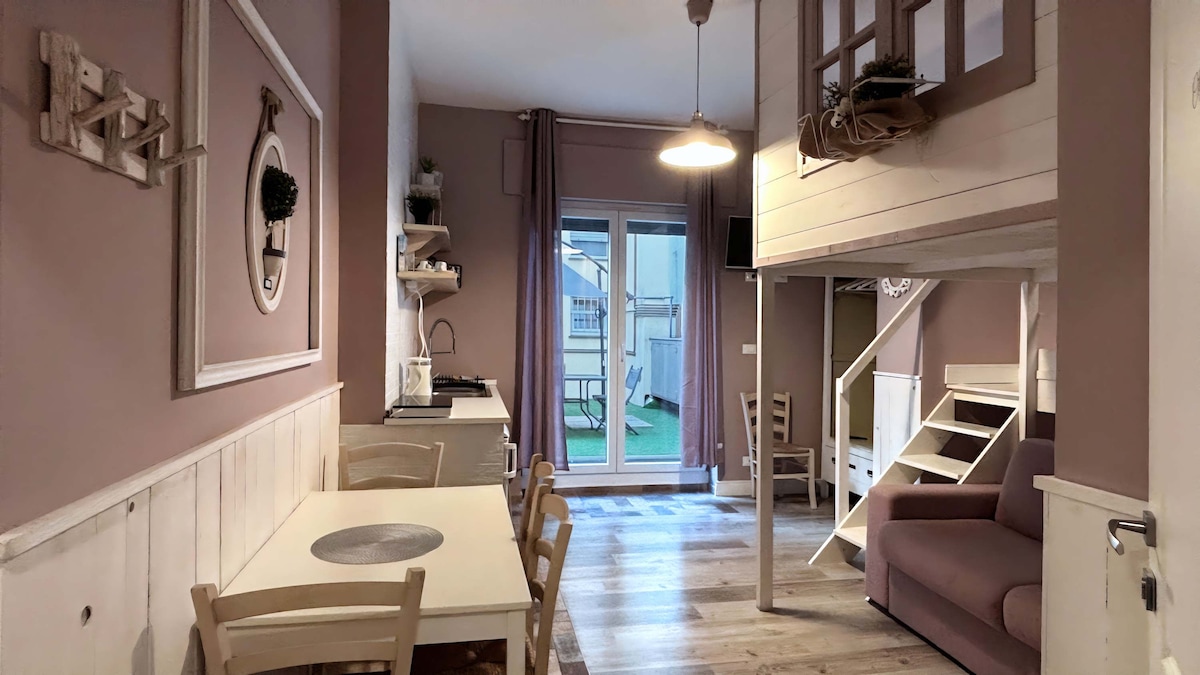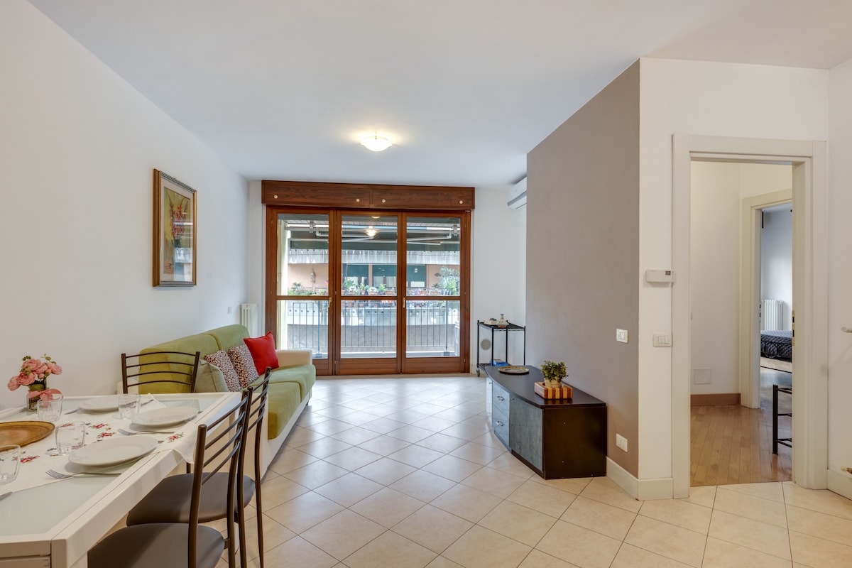 Spacious one bedroom apartment newly furnished and equipped, located just 30 meters from the shore of the lake. Featuring 1 bed (bedroom) and one sofa bed splittable into two single beds. The apartment has independent air conditioning. Enjoy a breathtaking view of the lake from the balcony where you can have an unforgettable breakfast. Train, boat, ferry are 50 - 200 meter away.