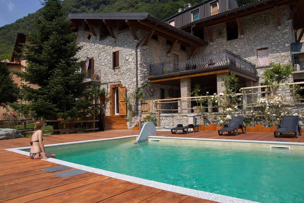 Our B&B “Al Pozzo” is part of an old farmhouse restored and refurbished. It is situated right on the path leading to the “Basilica di S. Pietro Al Monte” (http:/www.amicidisanpietro.it), a monument considered to be a jewel of Romanesque art (X-XI century). And further on along the path are our wonderful montains with its Monte Cornizzolo, a peak famous for paragliding (www.cornizzolo.com). Is is a very short distance from the cliffs, where climbing enthusiasts will enjoy various levels of difficulties in this adventurous sport. There are easy links to che cities of Milan, Como, Bergamo, to the picturesque towns of Bellagio, Varenna, Menaggio and to Switzerland. And just 4 Km from “Al Pozzo” you can visit the beautiful historical city of Lecco, on Lake Como, with its amazing views famously described in the novel “The Betrothed” by A. Manzoni. A bit about us: we are a family made up of a young couple, Barbara and Beppe, and two children, Ale and Franci, lovers of mountains and nature. We grow our own organic vegetables, we have two dogs and even a stable with twenty odd goats which help us produce a high-quality homemade cheese! You will be able to taste it at breakfast or it you choose to dine comfortably at our typical restaurant part of the farmhouse structure- We are looking forward to your visit!