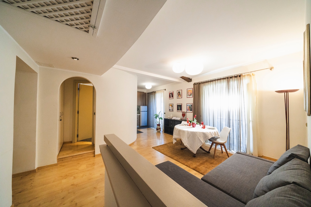 New apartment, built and furnished in a modern style with private car parking. Kitchen and living room are in open space and very bright. From the terrace you can directly reach the beach of the lake and children's play area. At less than 5 minutes on foot you can reach the other beach of Abbadia Lariana, train station, and hiking path: "Sentiero del Viandante". Shops, pharmacy, bars and restaurants are very close to the apartment, at 10-15 minutes on foot.