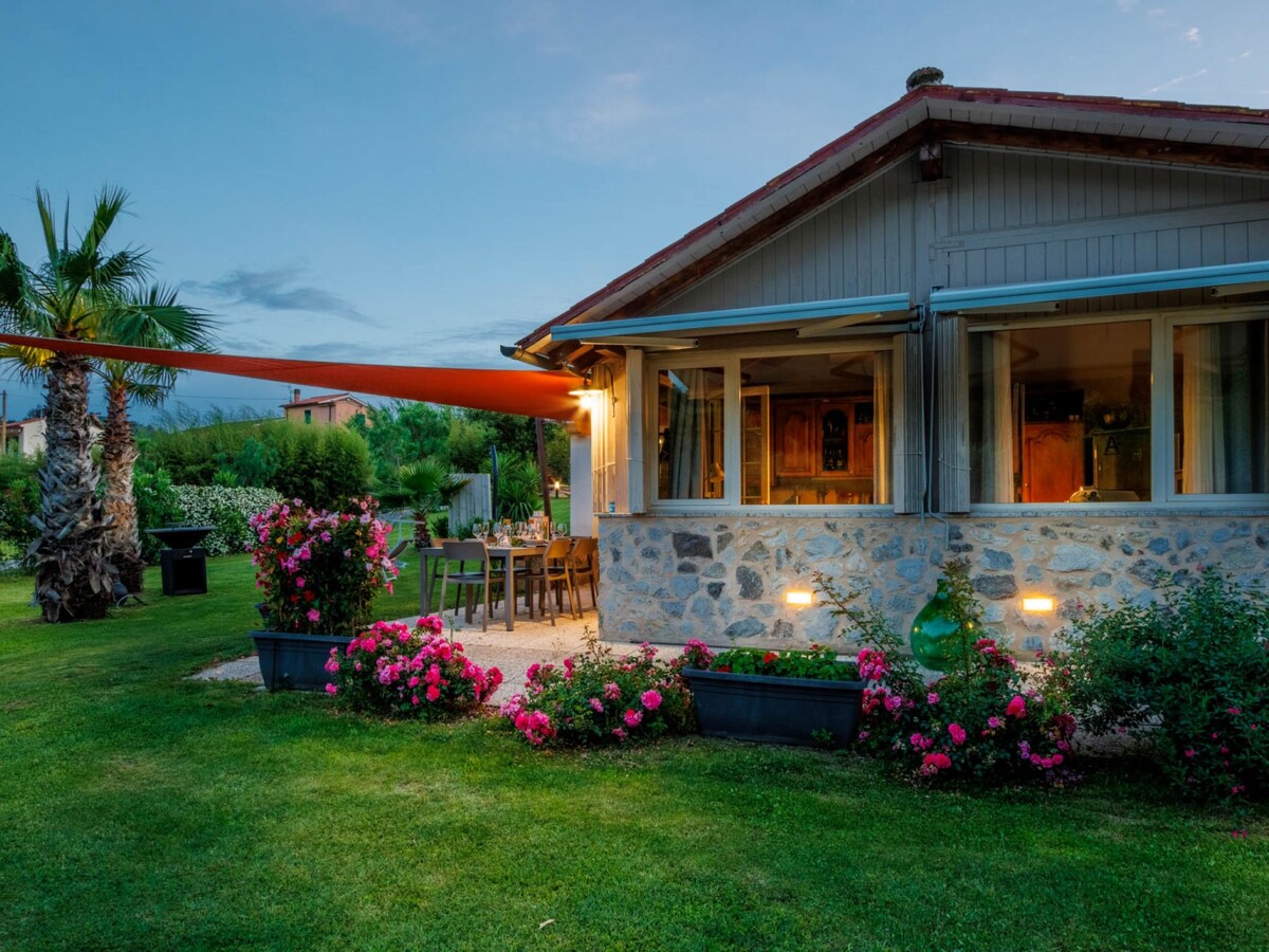 Splendida villa tra le colline toscane ad un passo dal mare inserita in una splendida campagna toscana contornata dagli ulivi, vi rilasserete e ritroverete la serenità della convivialità degli amici e familiari la proprietà è adatta a famiglie numerose e compagnie di molti amici abbiamo la possibilità di ospitare fino a 14 persone.