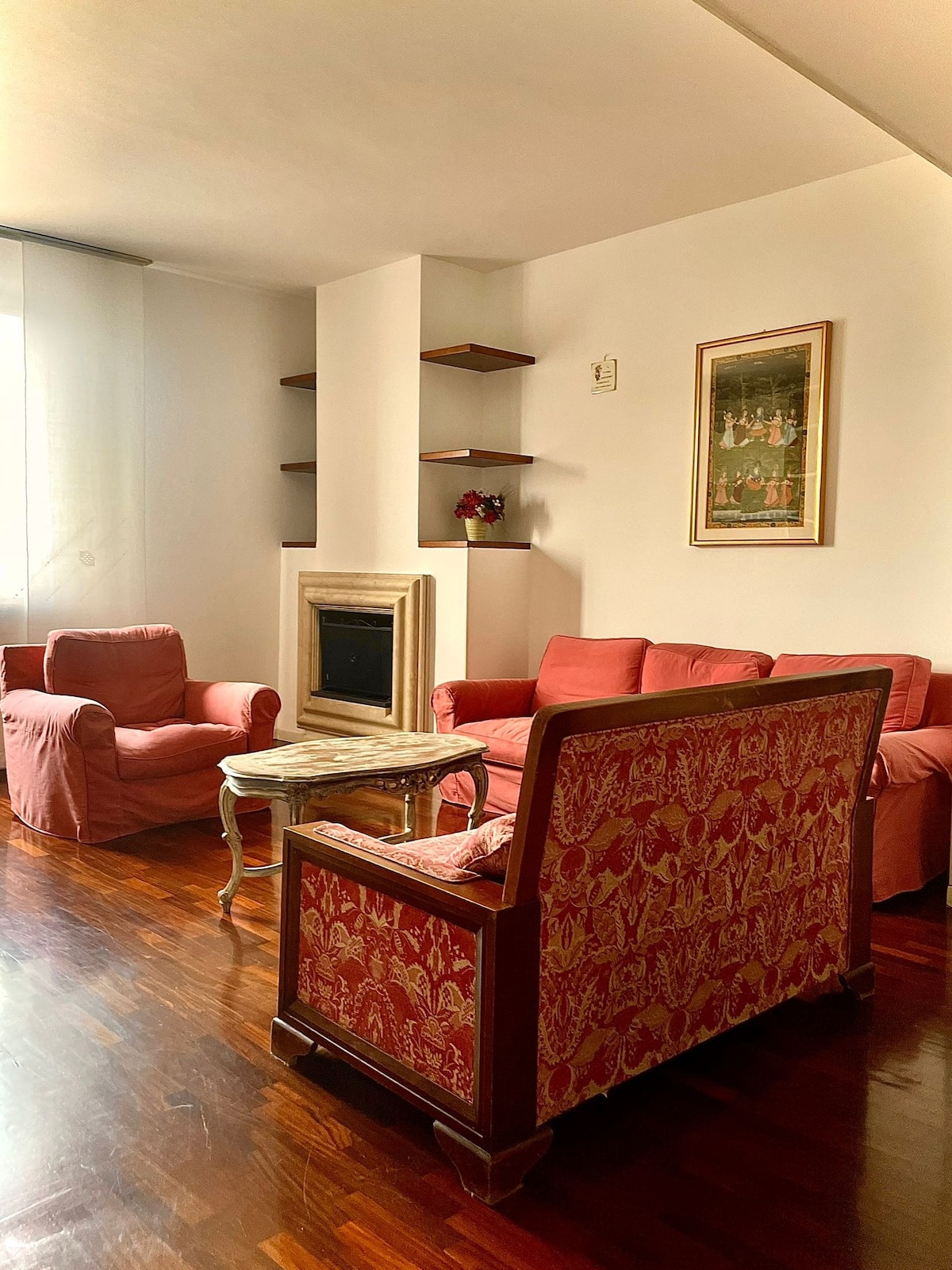 Luminoso ed ampio trilocale in centro storico a 200mt dall'ospedale e a 15' a piedi dalla stazione. Comprende: sala con due divani letto, TV, WI-FI, camino elettrico e libreria; Cucina completamente accessoriata, dotata di forno, frigorifero, freezer, lavastoviglie, piano cottura elettrico, macchinetta del caffè, piatti, stoviglie e utensili; Camera da letto matrimoniale; Camera con letto singolo trasformabile in matrimoniale e una scrivania con poltrona ergonomica. Parcheggio gratuito a 200mt.