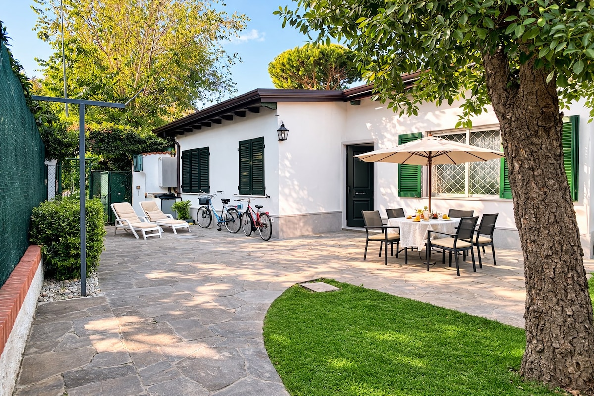 A true Oasis surrounded by greenery, very quiet, 300 meters from the sea, 1 km from Forte dei Marmi. The Villino is modern, bright, with a veranda and an enclosed and safe garden, even for pets. Unlimited wifi, smart tv. The residential area is exclusive and well served. Internal private parking space. Ideal for 2 people or for a family with children and pets.